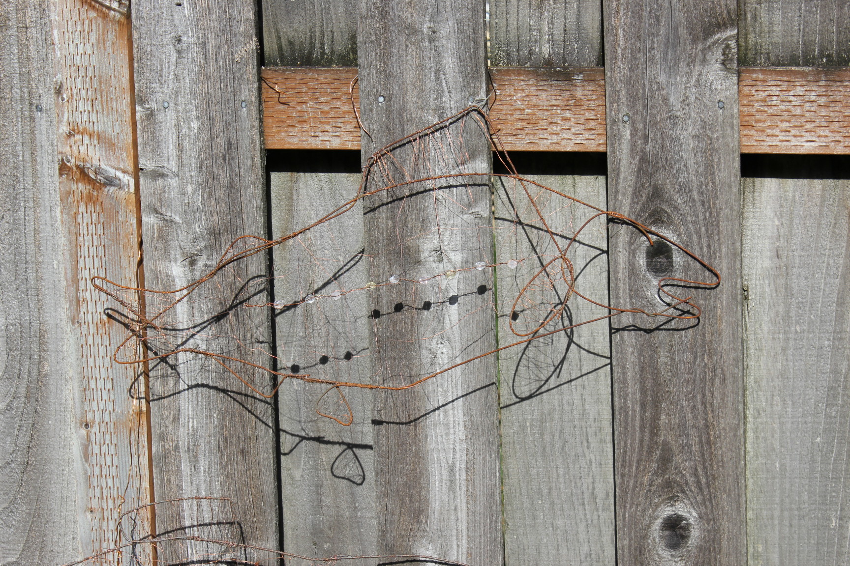 Actually, the only reason I snapped this photo is because I never realized before that I had so carefully placed the top salmon. The knot on the fence is perfect.