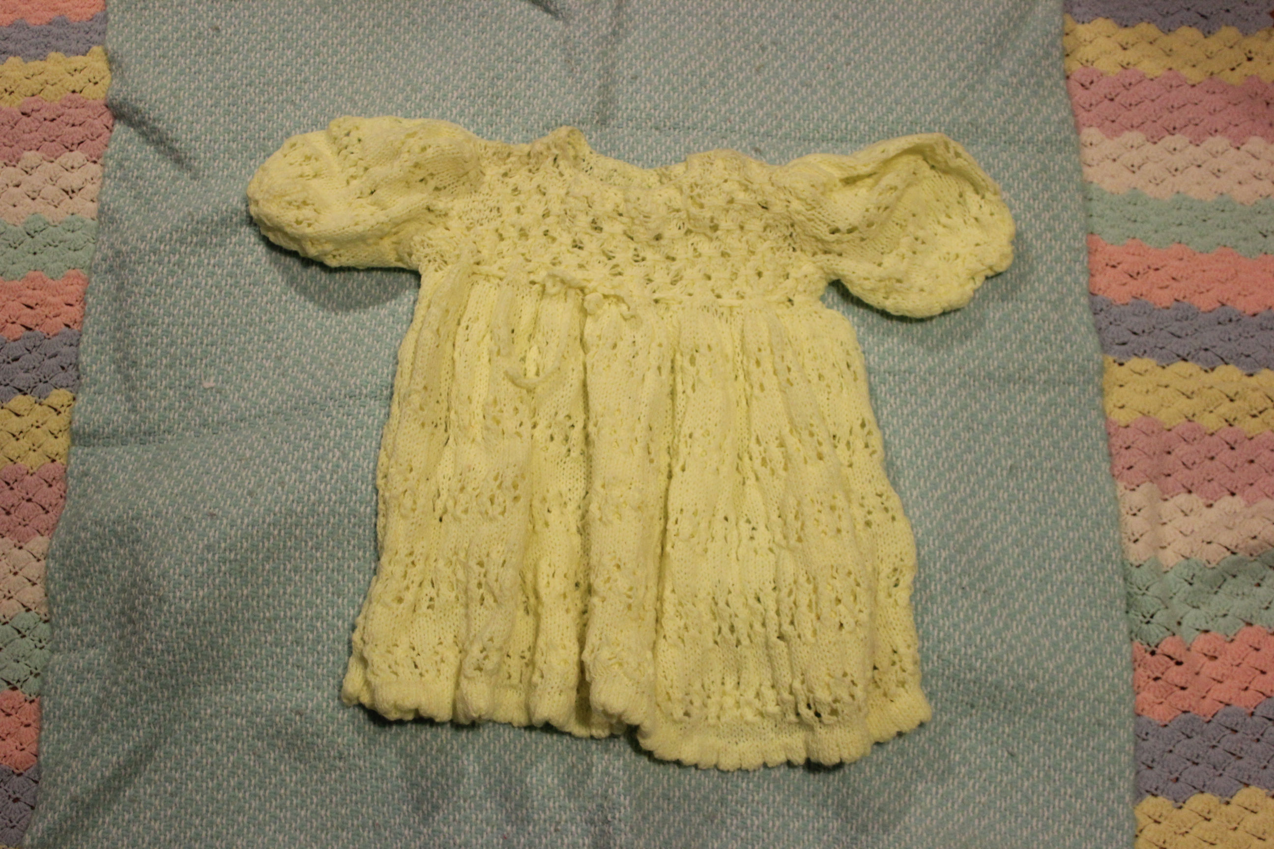 The yellow knit dress was an Easter gift to Arwen from my mother on the occasion of Arwen’s second or third Easter. It’s beautiful and I had honestly forgotten it existed.