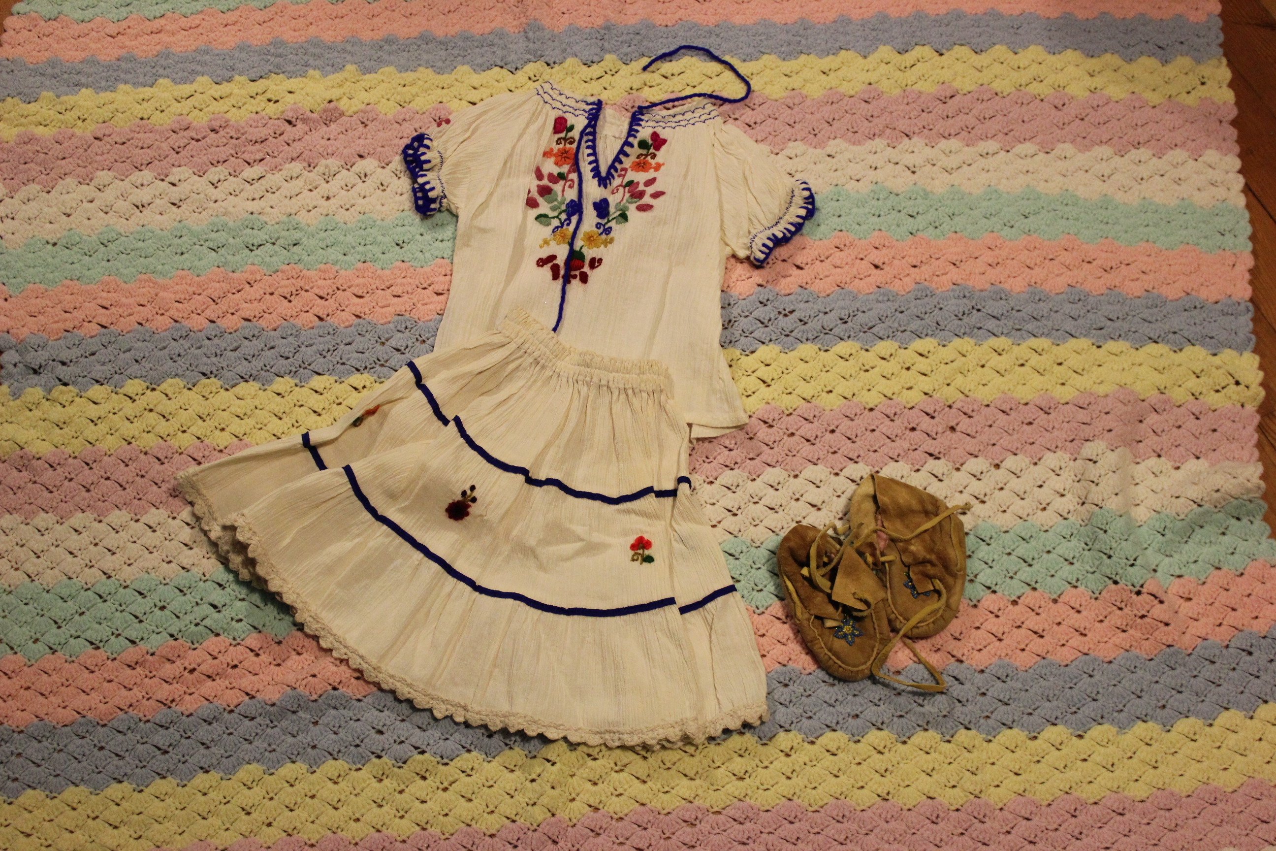 But then, I had forgotten almost all of those items except for the dress from Ecuador. Saved but forgotten, and rescued in time for the owner (Arwen) to pass them on to her own daughter.