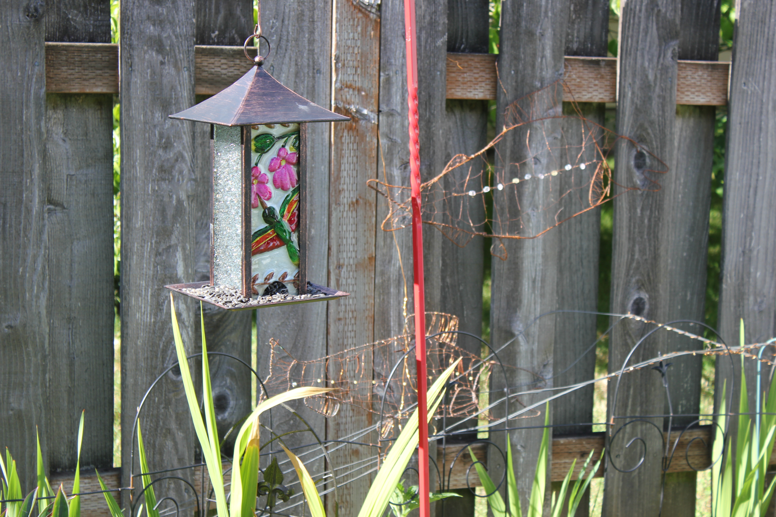 This was a spur-of-the-moment purchase. A funky glass bird feeder that is probably prettier than functional, but I filled it and put it on a shepherd’s hook in the backyard. now to see how long iot takes the little birds to find it (it’s much too small to host the big birds – they’ll have to share with the squirrels out front).