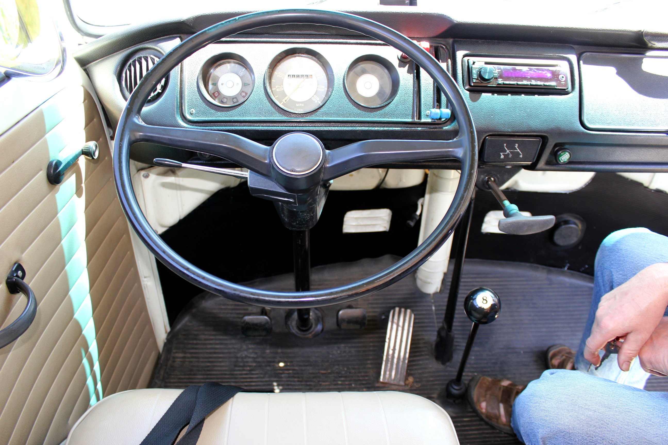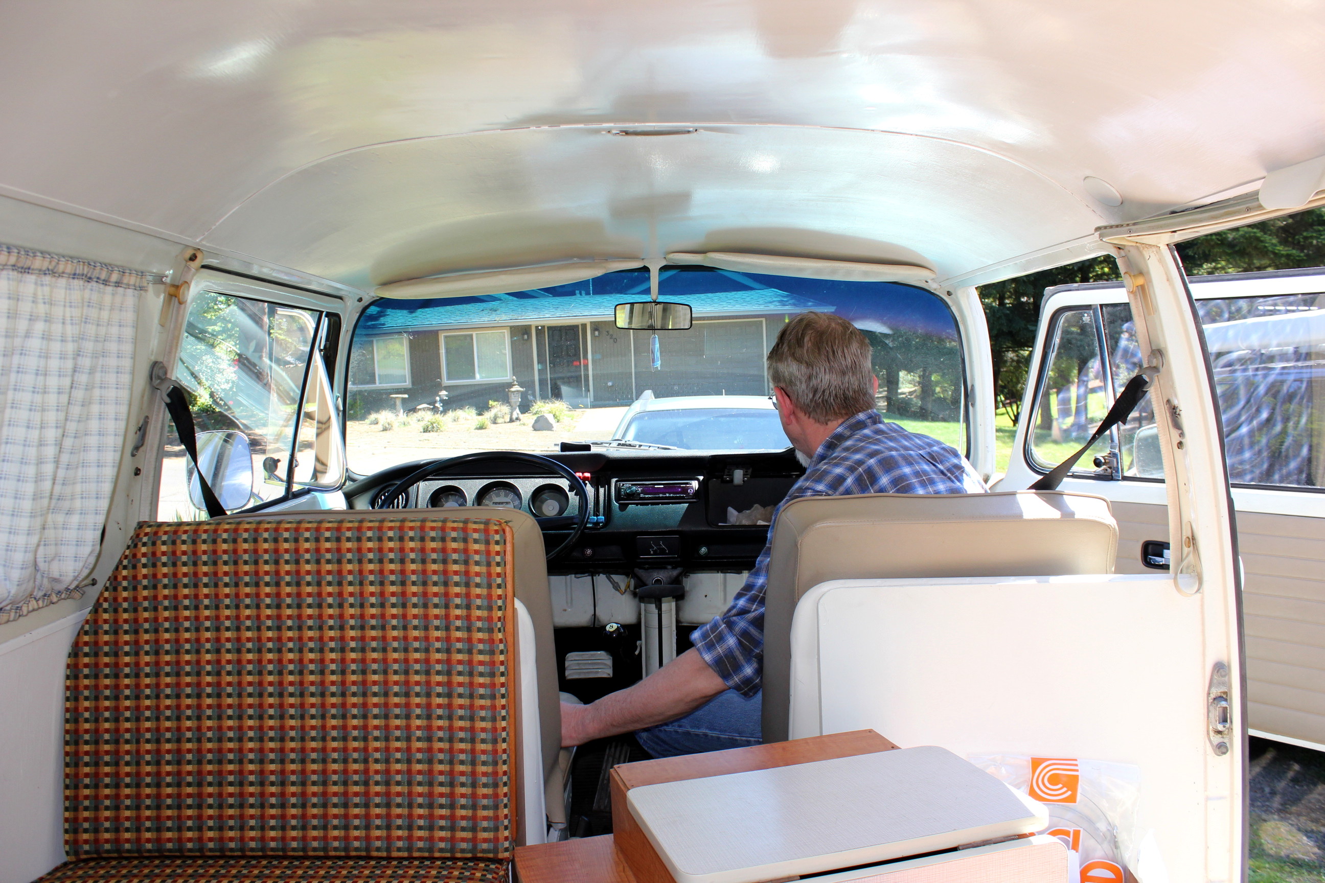 That’s one funky 1970’s front seat and gear shift. For the record, I can drive a stick shift. And I do know what the choke does.