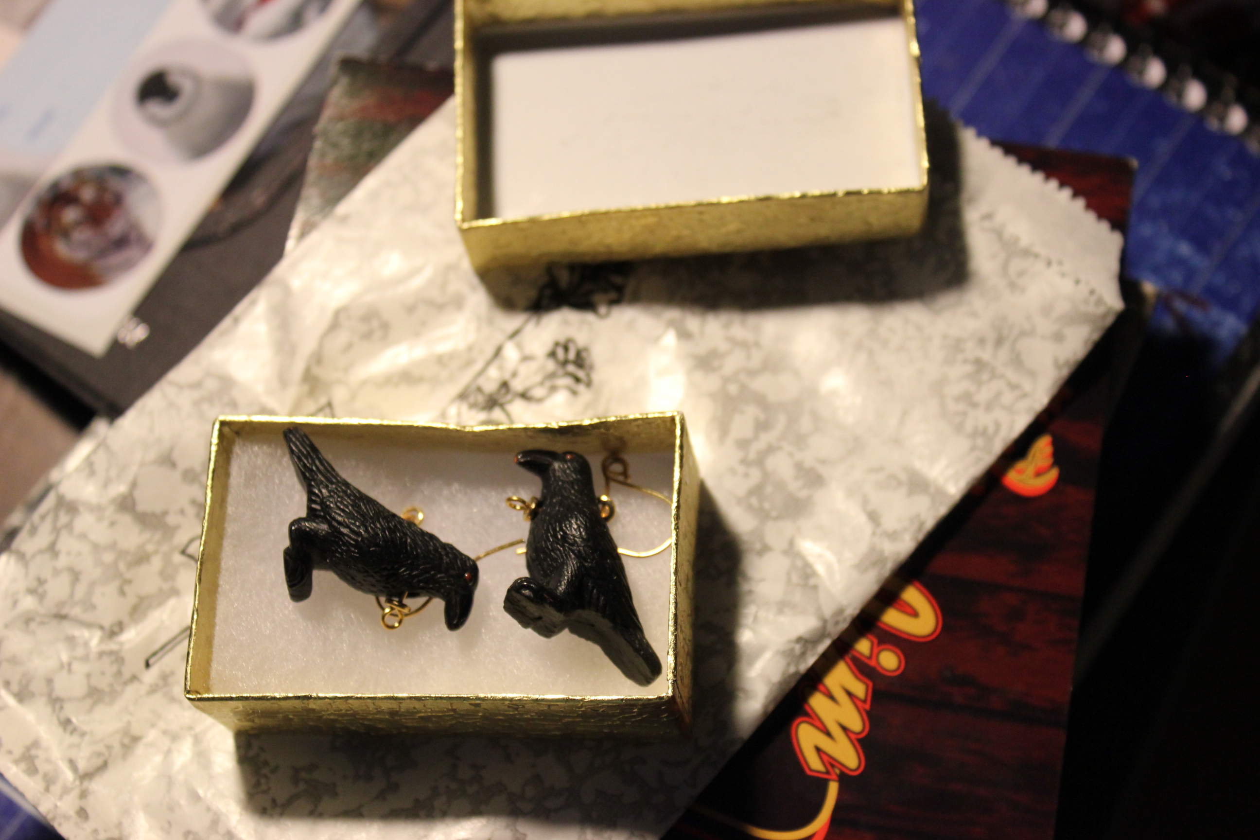 Speaking of birds: my oldest found these ravens at a craft fair in Alaska. Raven earrings! How very wonderful! ♥
