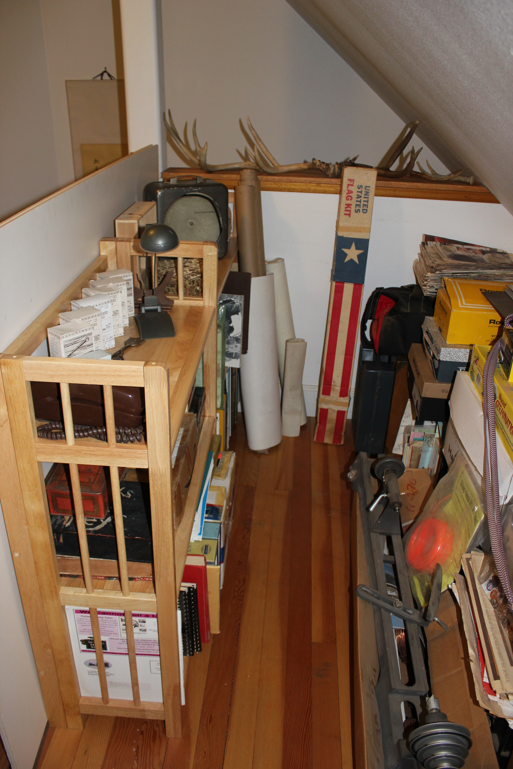 The white item to the left of the photo is an antique map pressed between white boards to keep it flat. That I must leave alone.