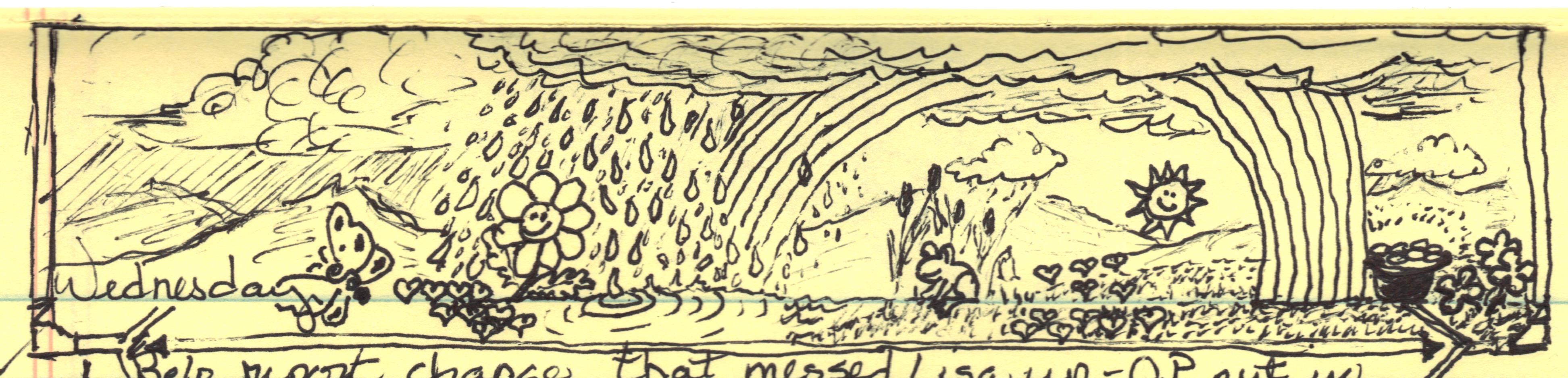 And then there are the webinars that go on forever. The entire top portion of my 8×11.5″ yellow tablet becomes a story in between the note taking. Mountains rise, storms come, rainbows become visible as the sun comes out, flowers grow, frogs hide in the cattails, and a pot of gold is found in the bed of four-leaf clovers at the end of the rainbow.