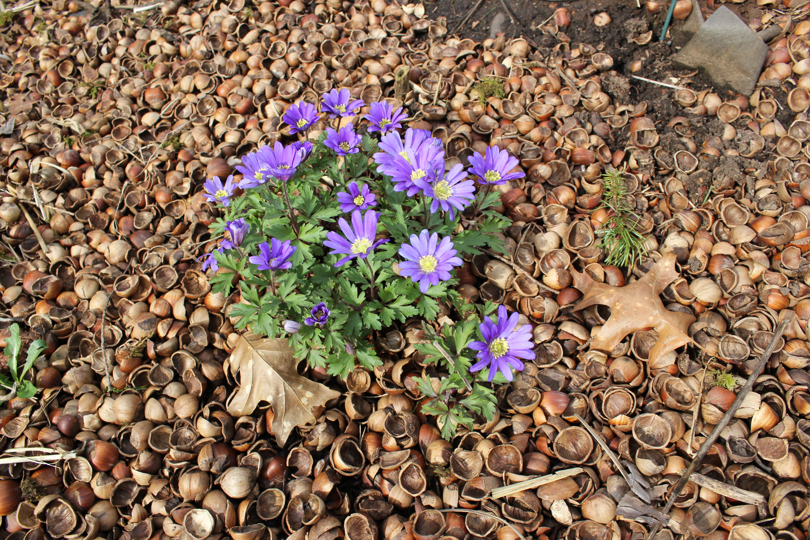 They don’t bother the oregano, I just wanted to show you that I got it all dead-headed down to the moss and framed in. And to show you how tall some of the peonies (red stalks) are already.