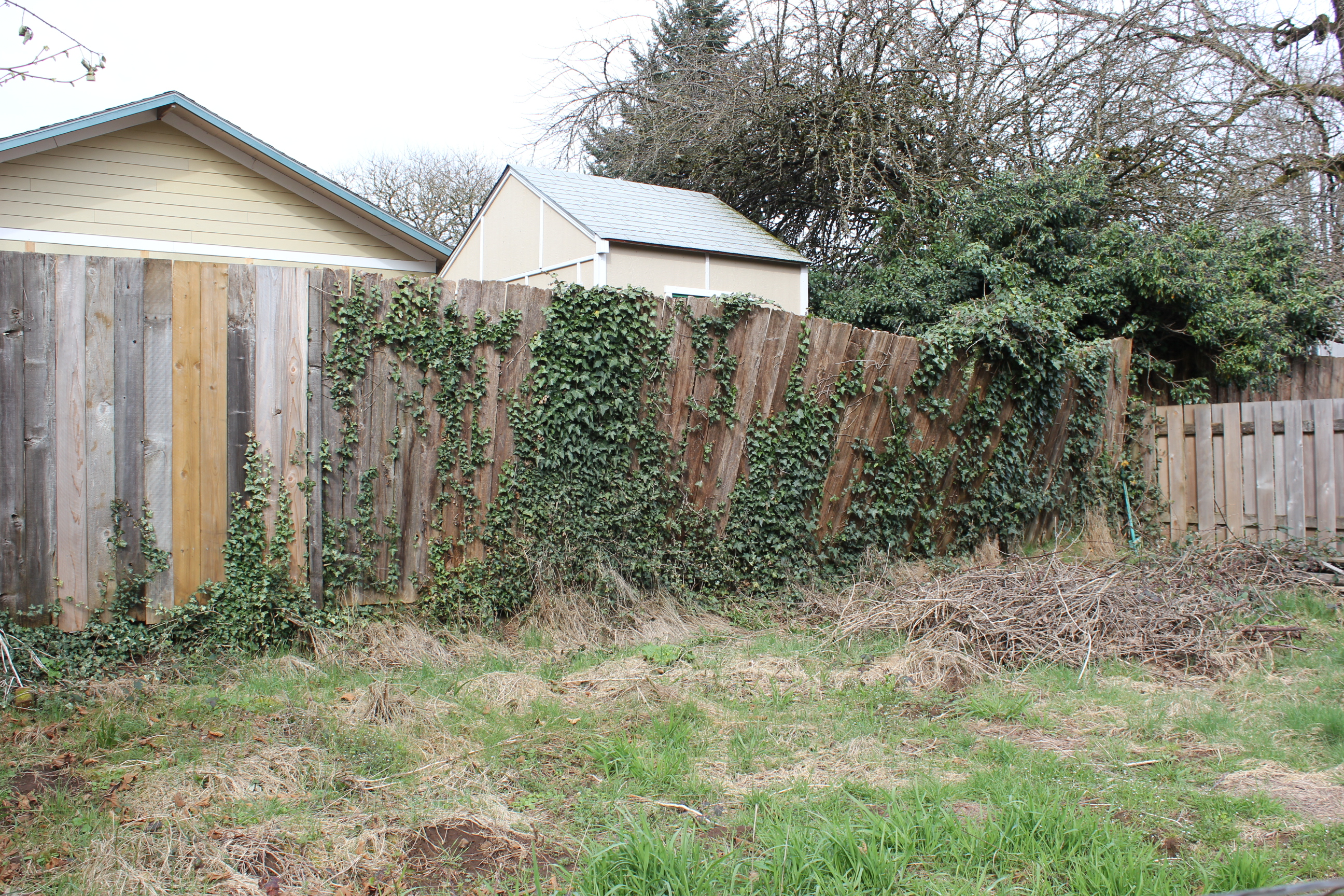 I wasn’t the only person out there. My next-door neighbor who lives behind us caught me at the grocery store where she works & I shop: she wanted me to know the ivy and the fence were coming down.