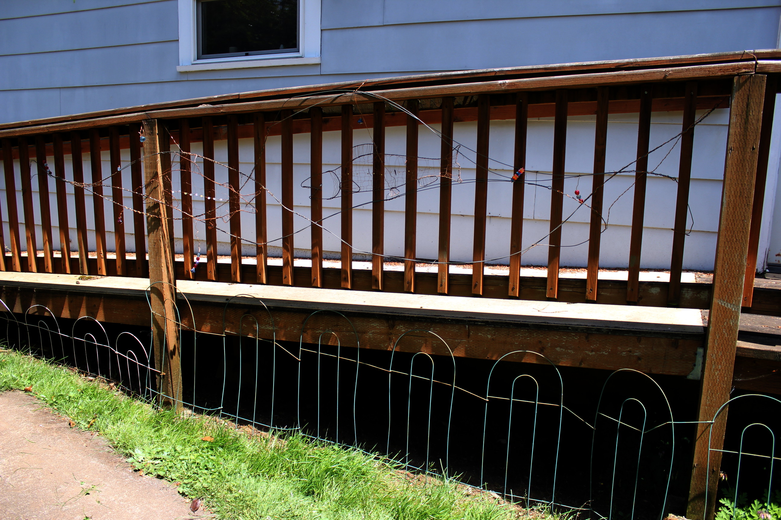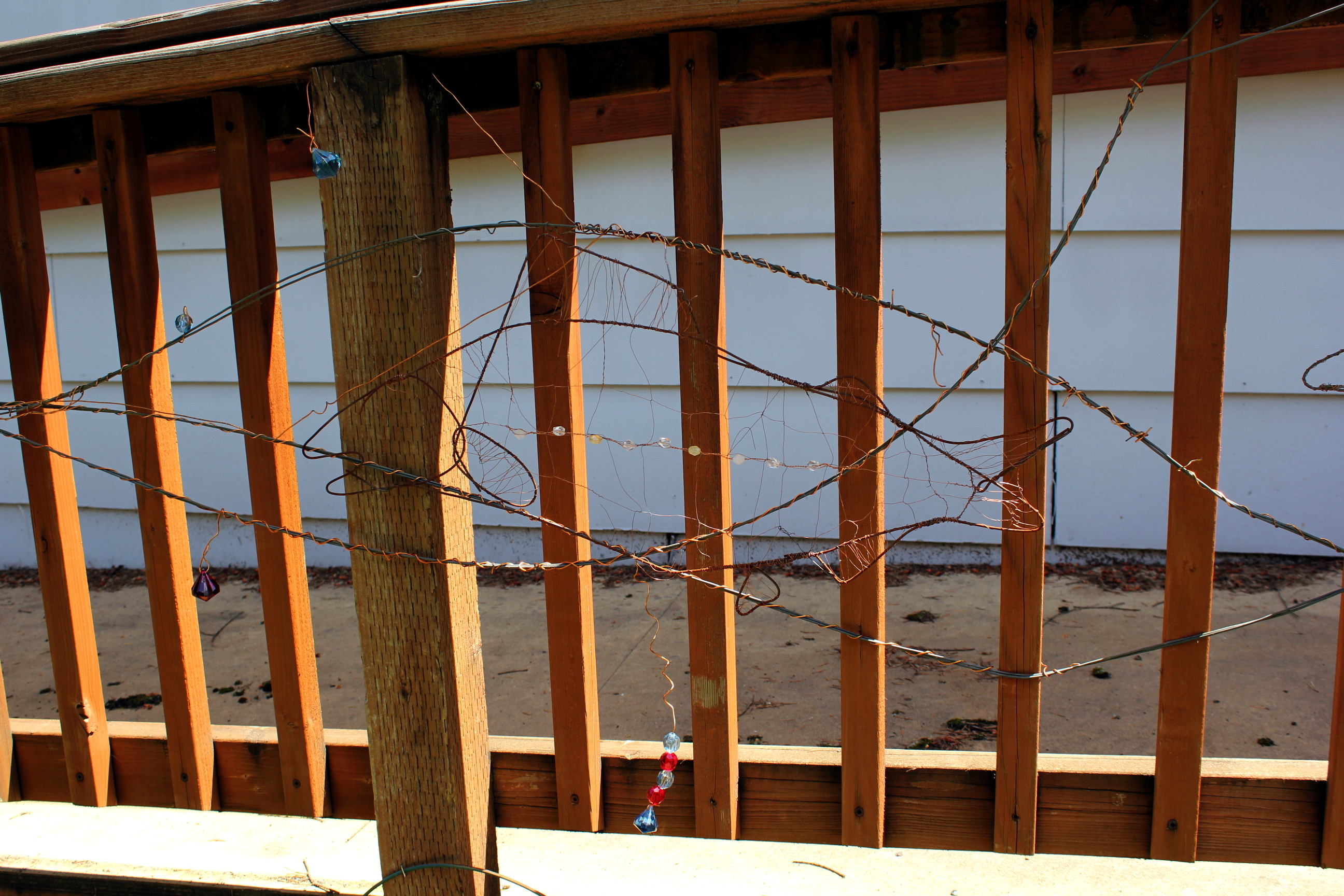 Wire sculpture is so difficult to photograph! I moved the salmon sculptures to the handicap ramp. I am happier with this positioning of the above sculpture than I have been with any of the previous locations.