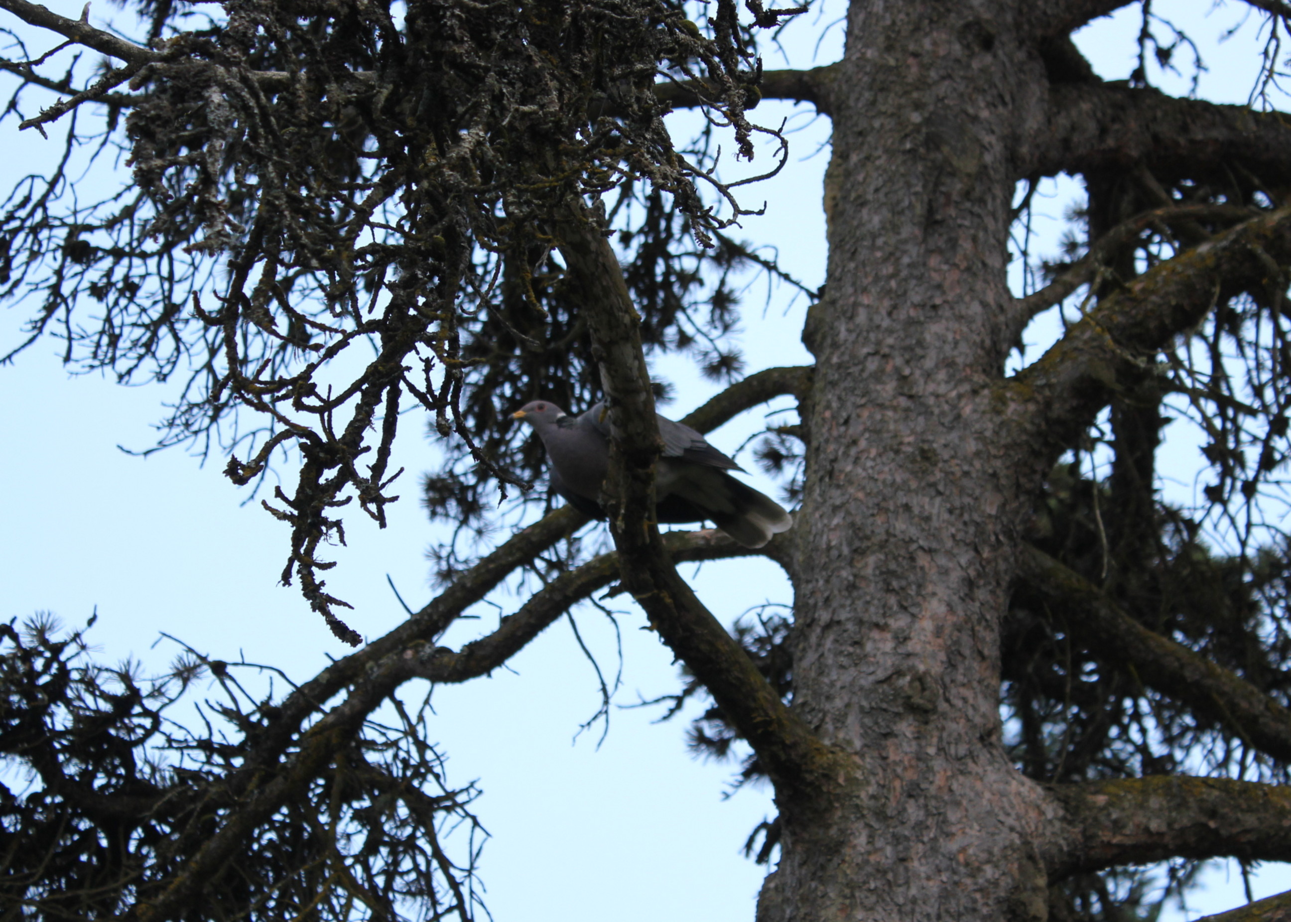I tried stalking them in the front yard, but I only managed to come eye-to-eye with this band-tailed pigeon that wanted to feed in the bird feeder. I was surprised it didn’t fly off as I delicately tip-toed past and then turned with the camera to snap it’s photo. It flew off.
