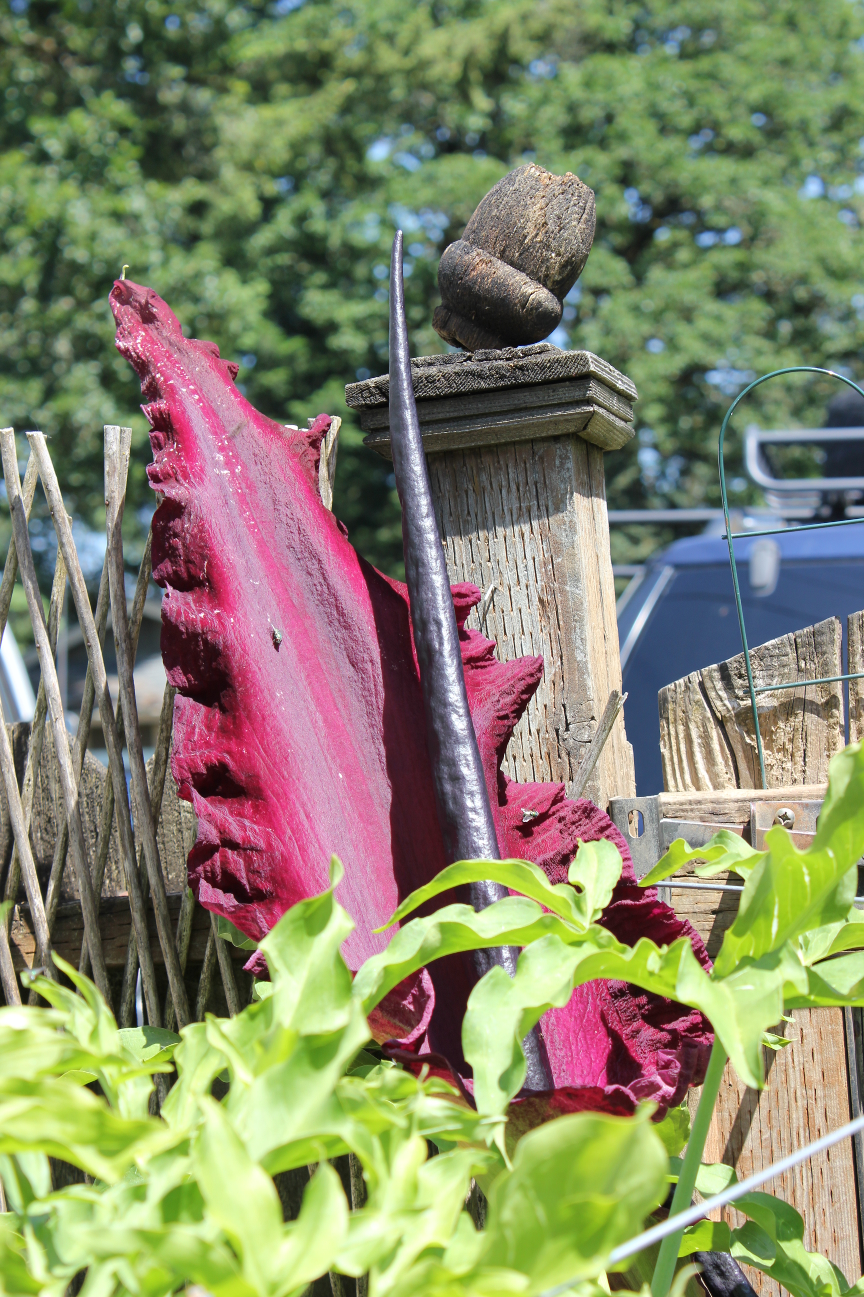 They arrived in time for the Stinkin’ Flower blooms. My husband promised his sister a bulb of the Dragon Lily for Christmas. She promised to return it to us C.O.D.