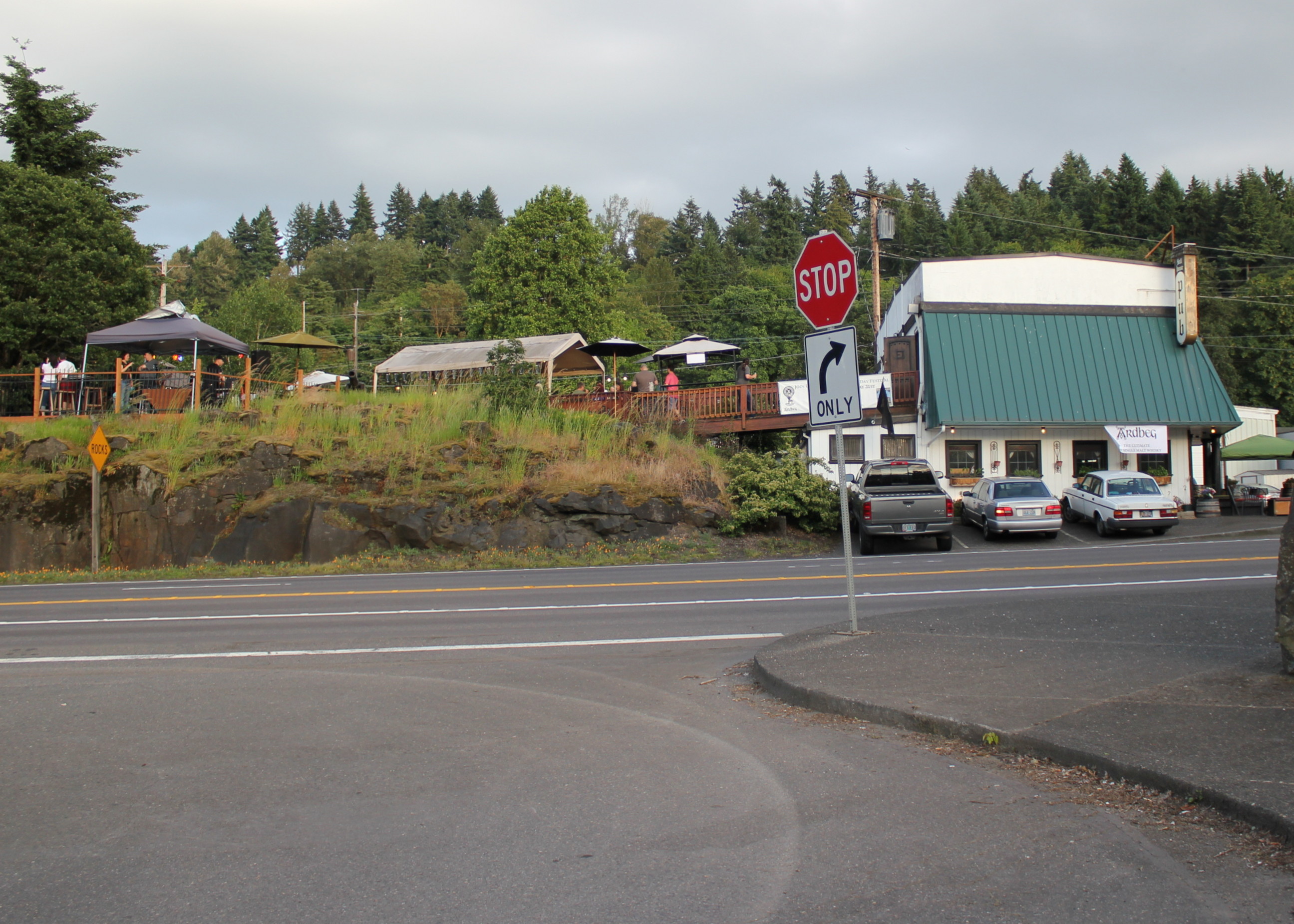 We wanted to take them out to our favorite place to eat: The Highland Stillhouse Pub. It sits right above Willamette Falls, has good service, and there was live music by Beltaine, one of our favorite local Celtic bands. They play a lot of sing alongs.