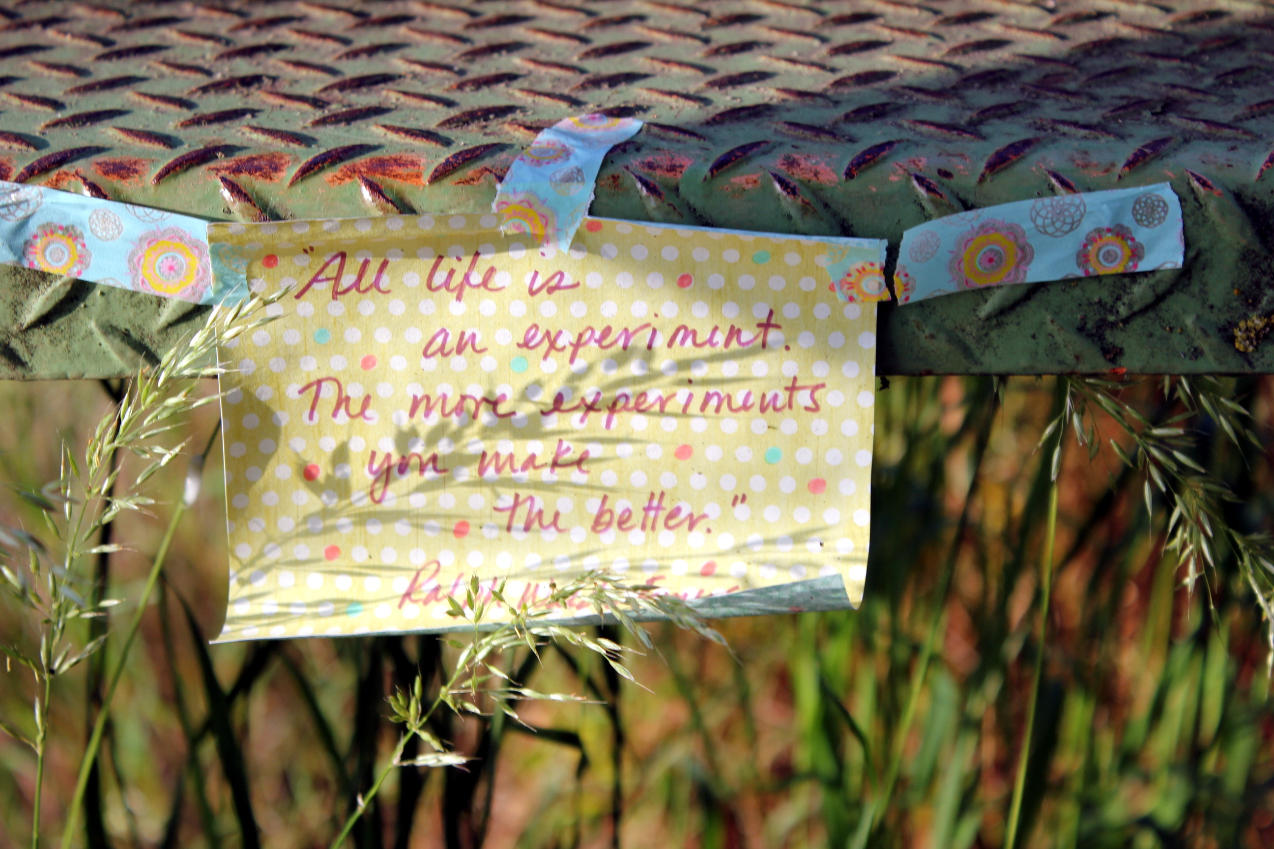 Everyone was well ahead of me when I started up the stairs to the catwalk. This beauty was taped to one of the risers.