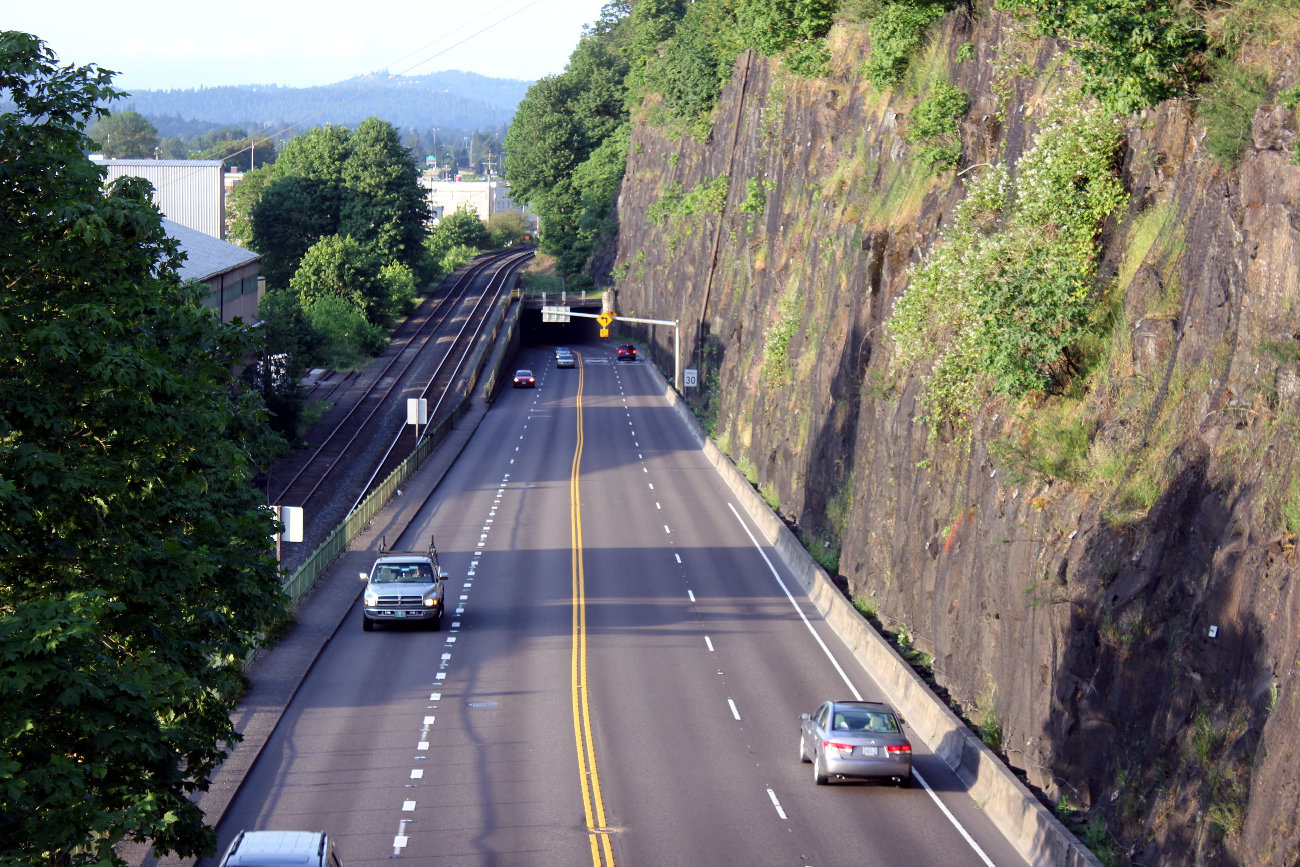 The Oregon City tunnel. It is right on a corner, so if you are side-by-side with a Semi, you need to back off and allow the semi to take both lanes through the tunnel. This is part of my daily commute.