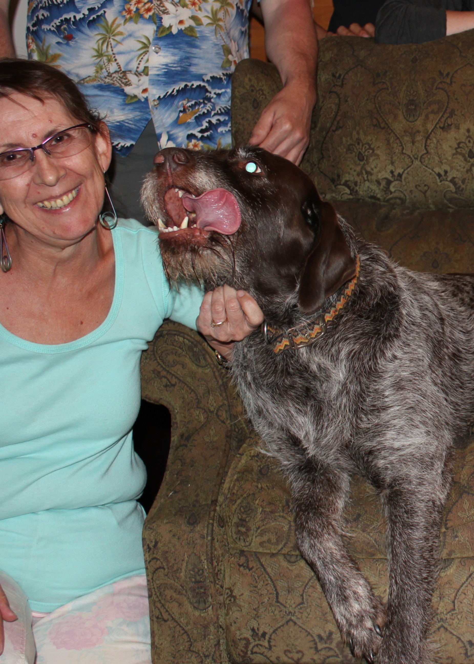 This was Take Two. Everyone stood around Murphy and I set the timer. I hurried over to my place, kneeled, and Murphy (who was just too excited to be included), turned and gave me a huge, sloppy, doggy kiss. And then the camera flashed.