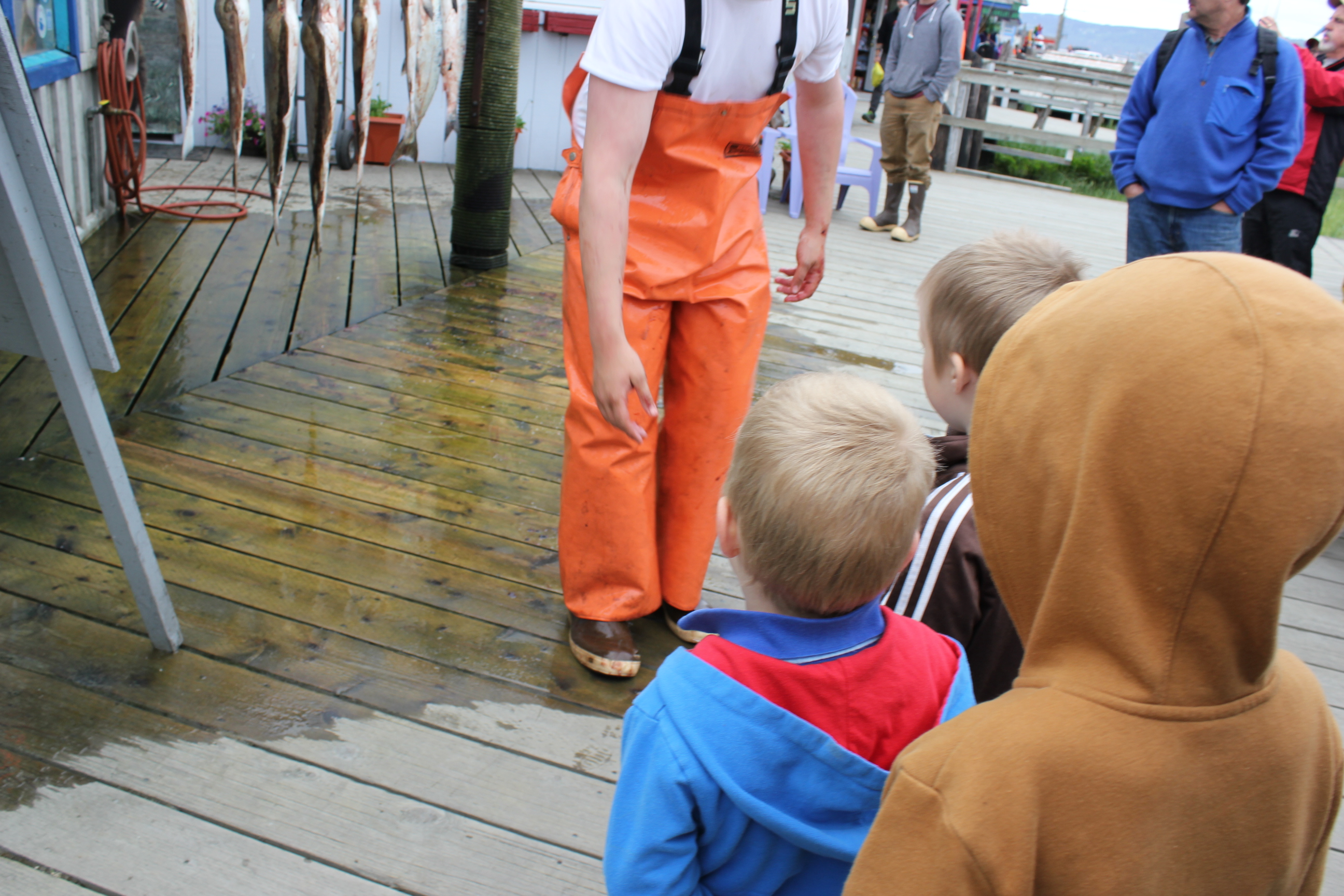 Someone’s charter had just docked and the the little boys were thrilled to watch this man clean the halibut and salmon catch.