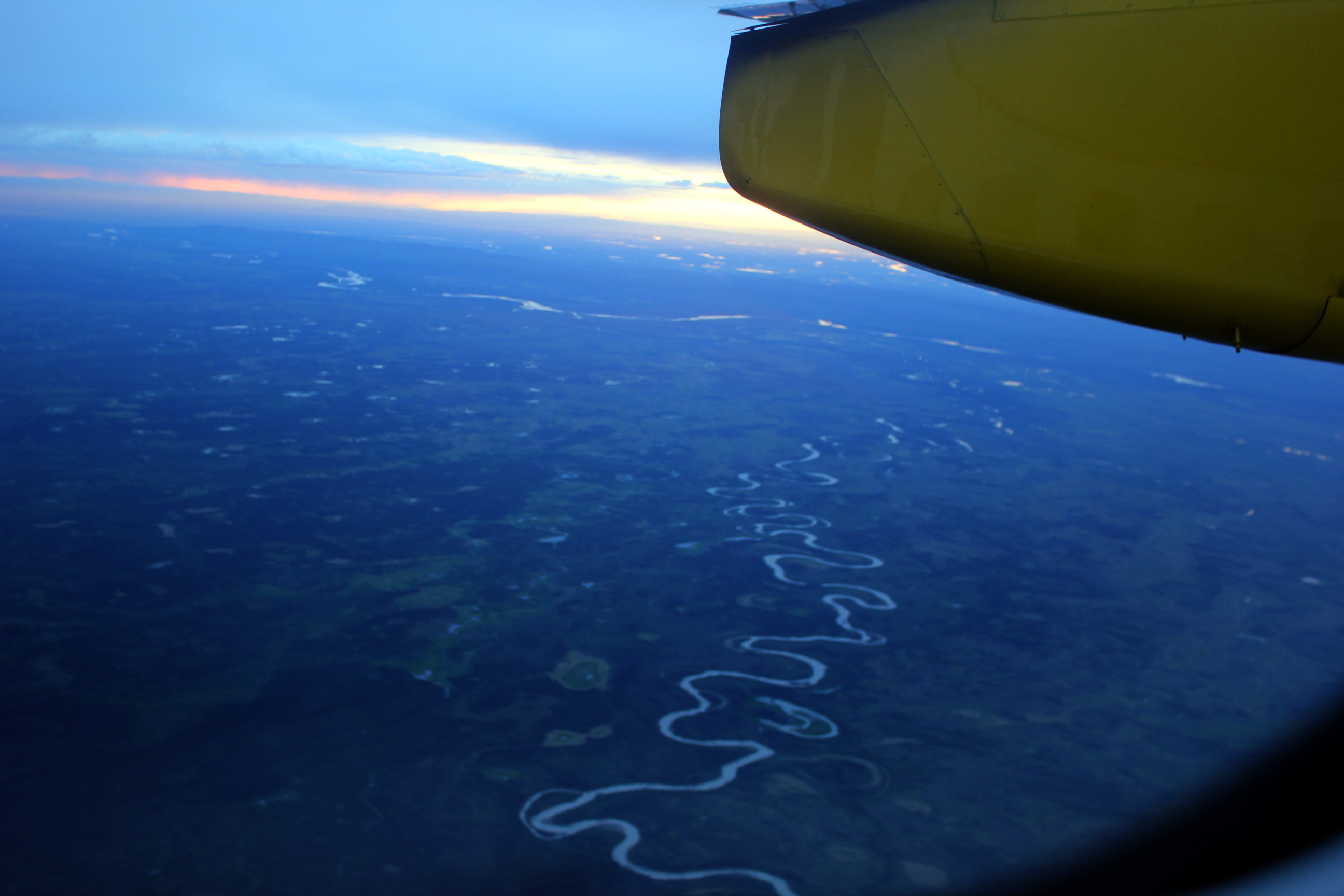 The flight from Anchorage to Fairbanks (much further north) was uneventful and still racing ahead of the sunset.