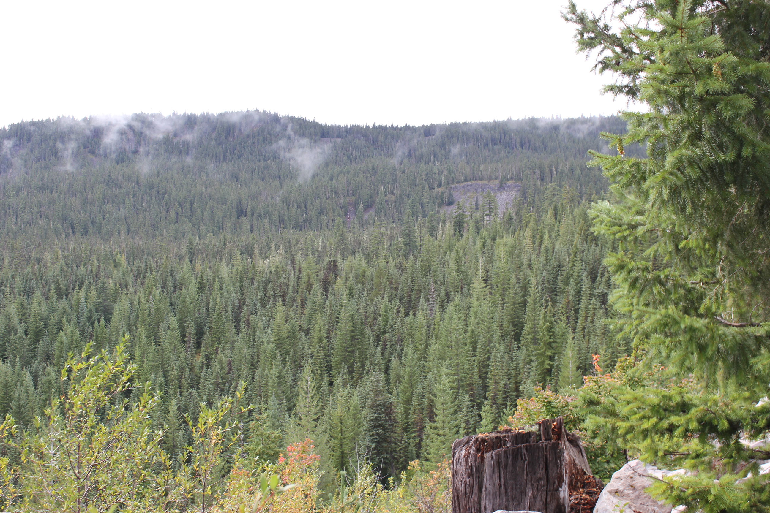 We drove out along the Clackamas River, out across the Barton Bridge, through Estacada, past the old Ripplebrook RS, and left onto the paved road to Timothy Lake. We turned left toward High Rocks and Hideaway Lake, and took the left hand option at the Y. I told Harvey that the road would get bad now as we were on gravel, and the wash-board is terrible going up to Hideaway Lake. Ahead, I watched the right tail light on the van blink on and off and made a mental note to tell Don he had a short in his taillights. The washboard tossed my little car around, so I slowed down and lost sight of Don’s taillights.