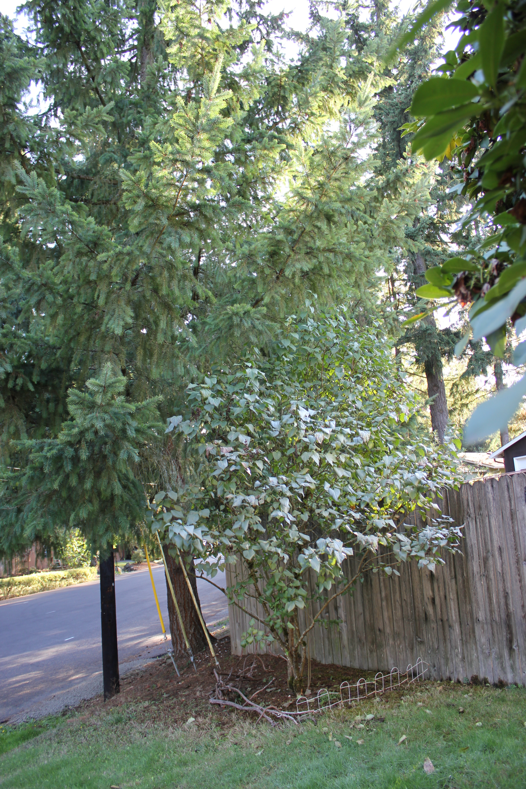I also moved several sedums. We’ll see which ones grow. I planted them under my older lilac bush and built a little fence around them out of rhododendron branches.