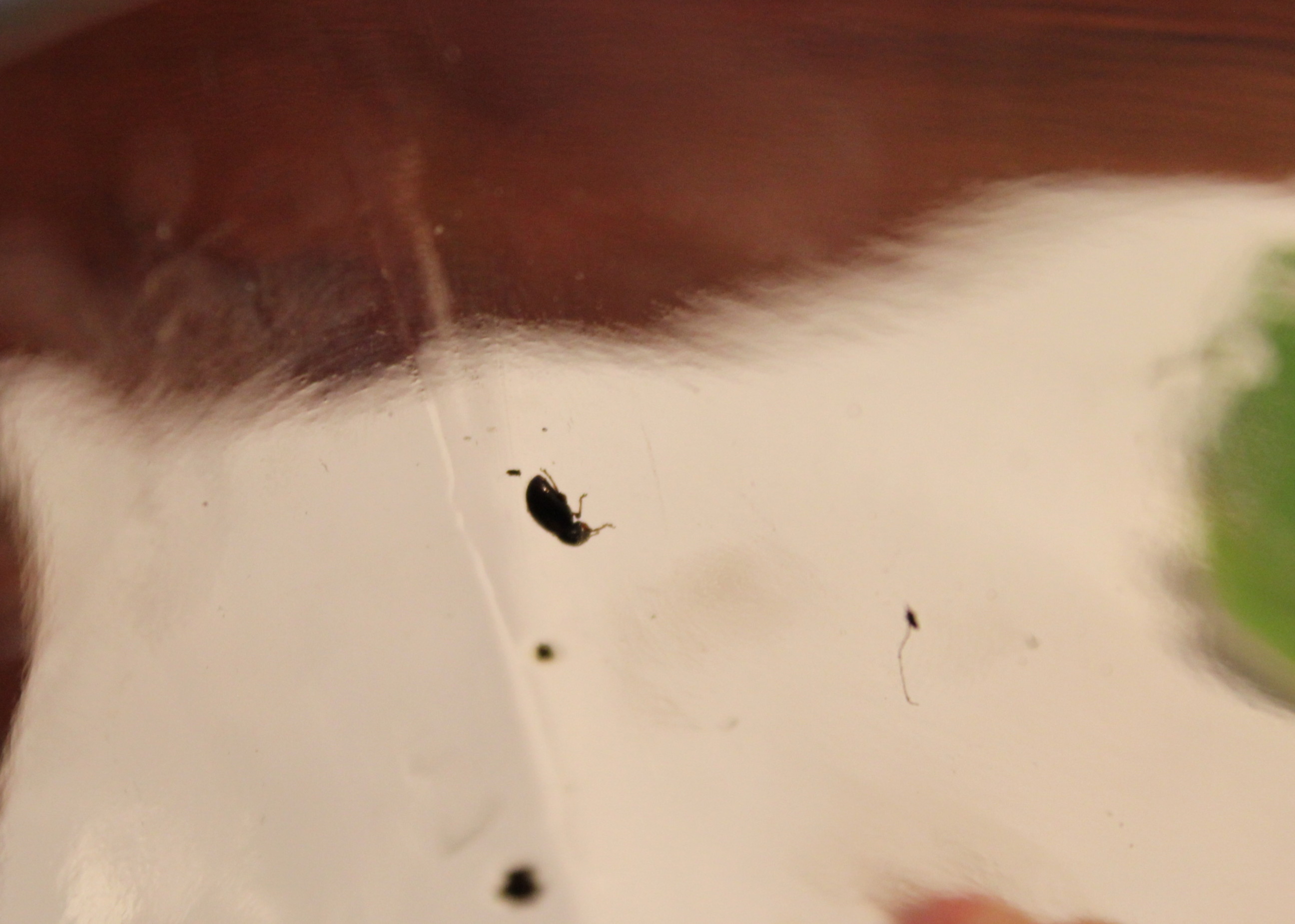 This is a Flea Beetle. No, it’s not a flea – it’s a beetle that resembles a flea and it can hop, but it doesn’t suck blood. It eats plants.