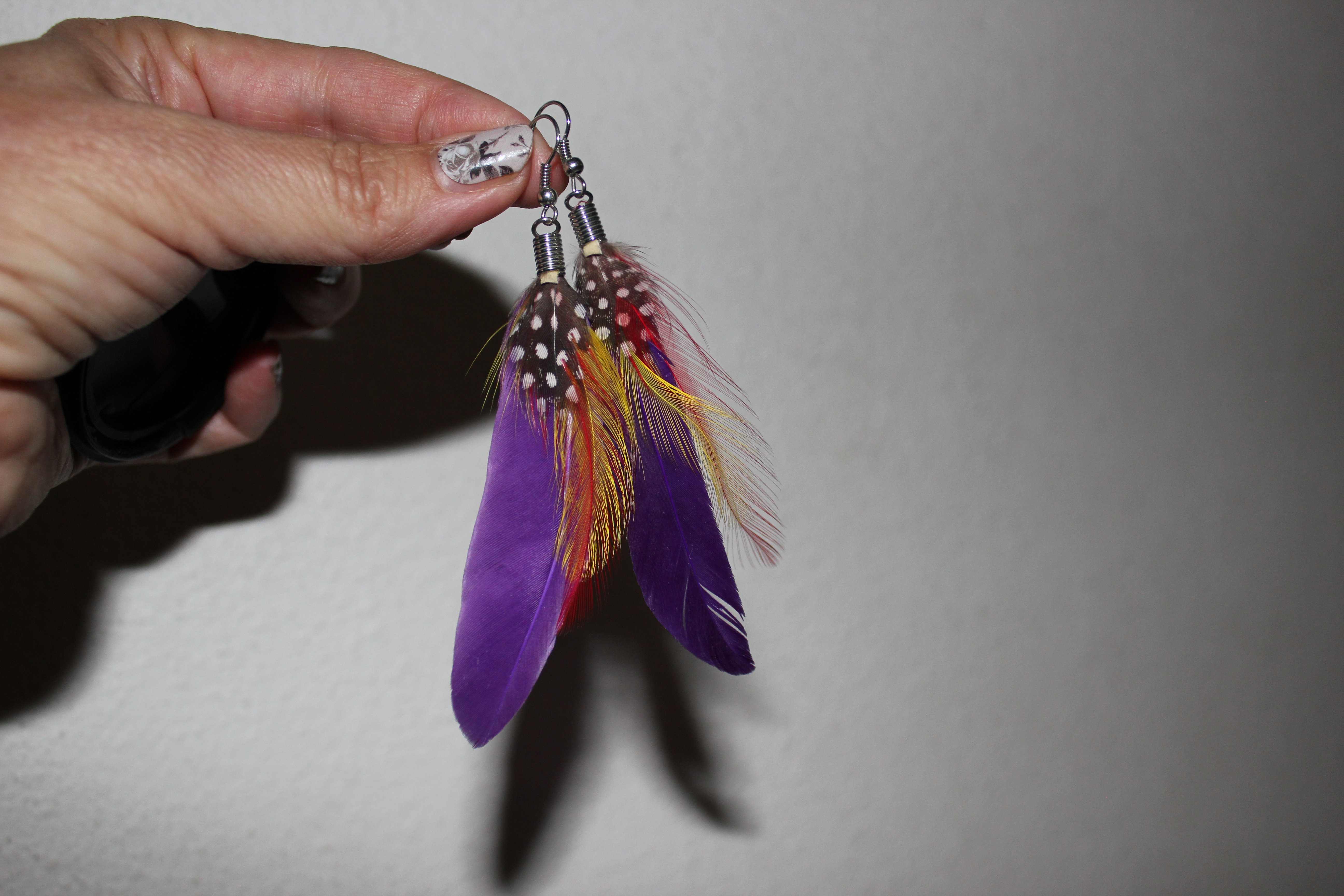 Feather earrings to go with the funky zebra jacket. Or some other cosplay outfit. They’re not my style for work.