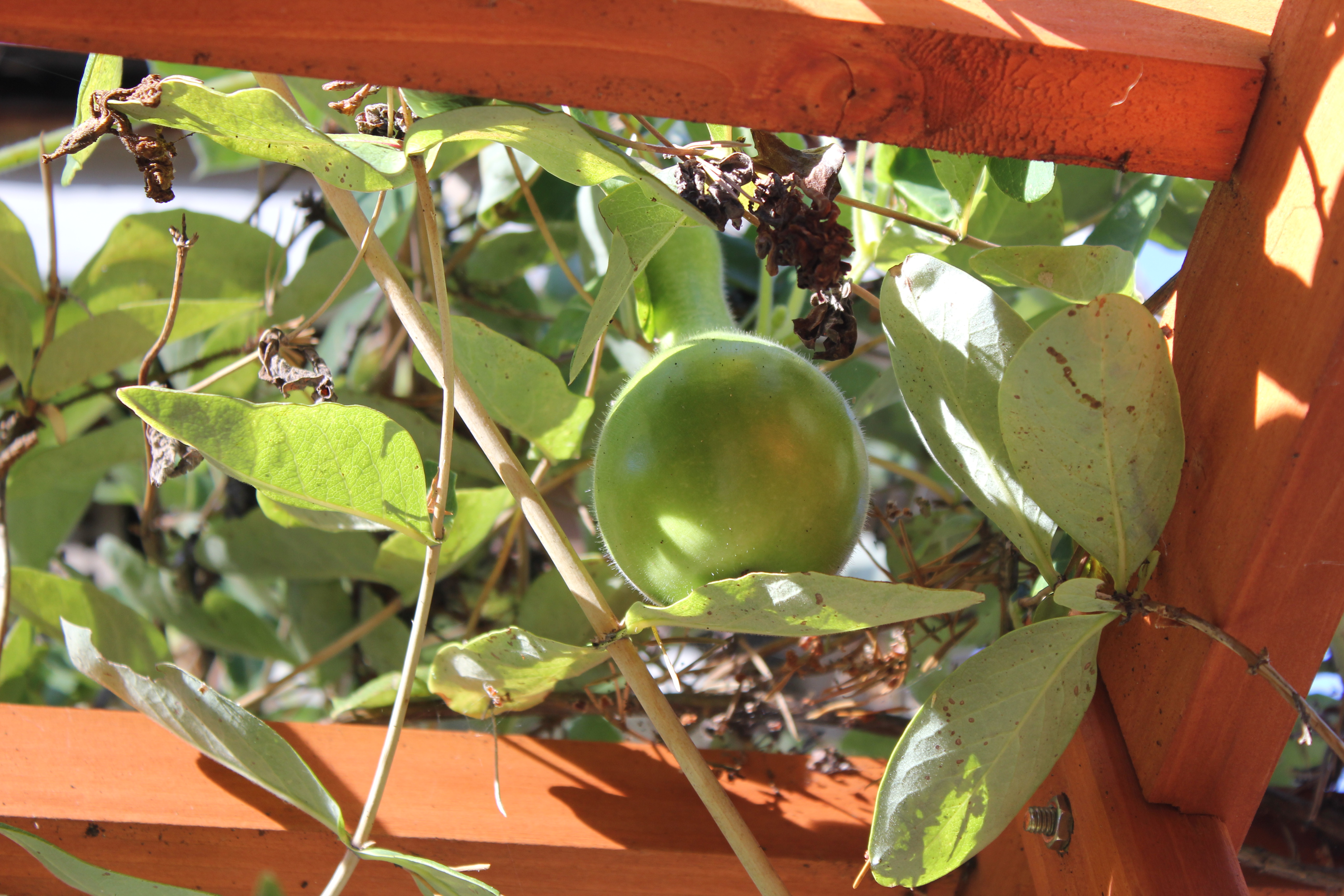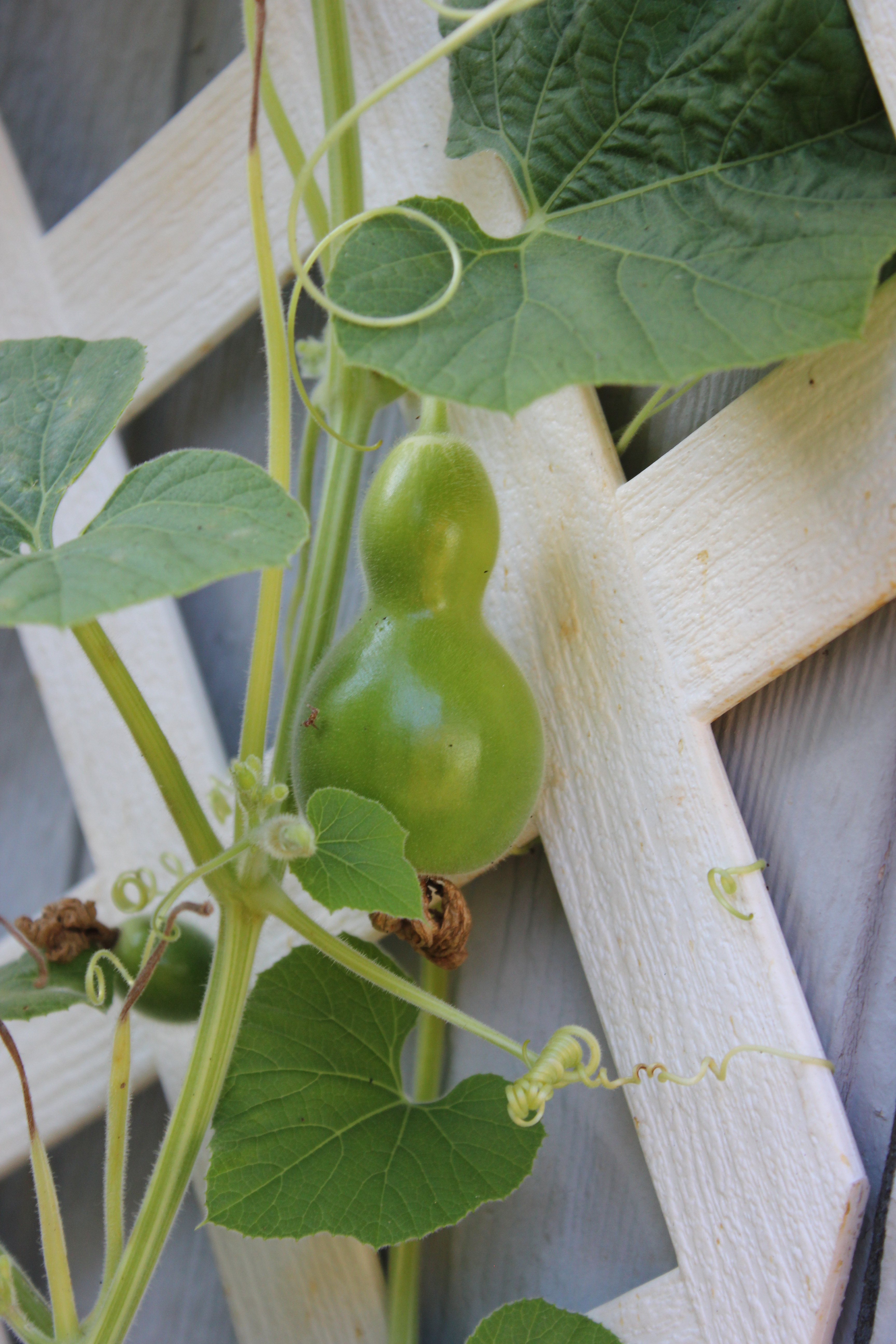 I planted bird’s nest gourds last spring. They didn’t like the location, I guess. This was the biggest one I could find – most of the others have just rotted off (or were eaten).