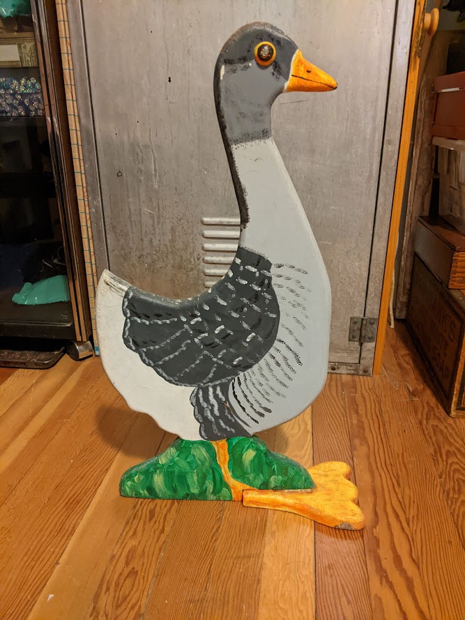 I found this poor duck in May of 2018. It was dressed in a Santa suit, of all things! I removed the cape and hat, but it was still a sad looking duck. It wasn’t even a proper duck that one could identify in a bird book. It has languished in my studio for the past four years, waiting for me to decide what to do with it.