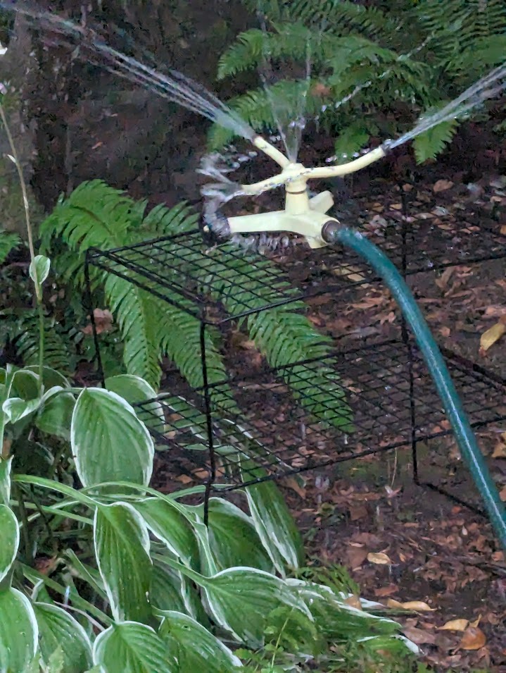 We’re in the middle of a hot three days, possibly reaching triple digits. Rather than try to write something, I decided to post pictures of sprinklers, the last one spouting water. Enjoy and stay cool.