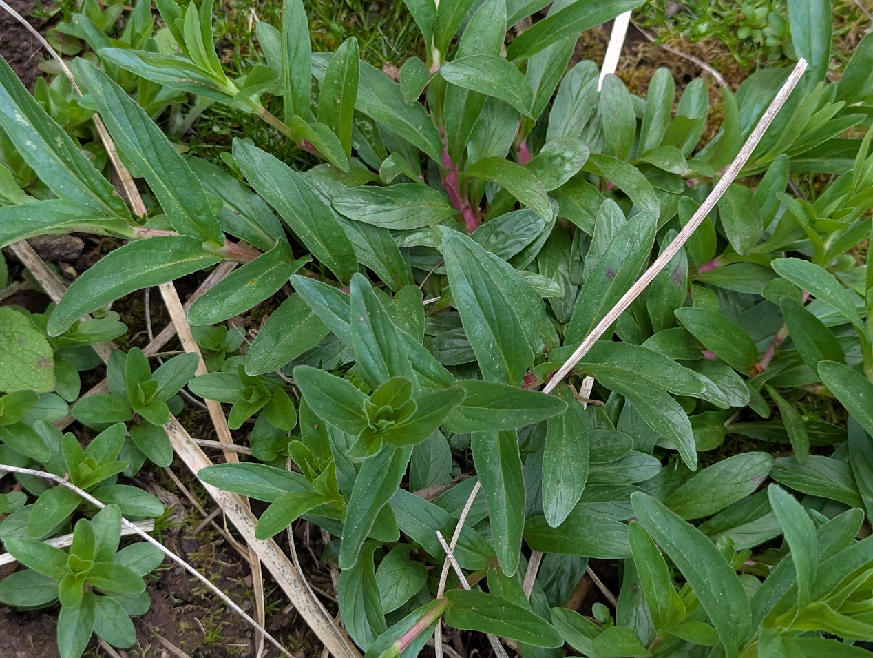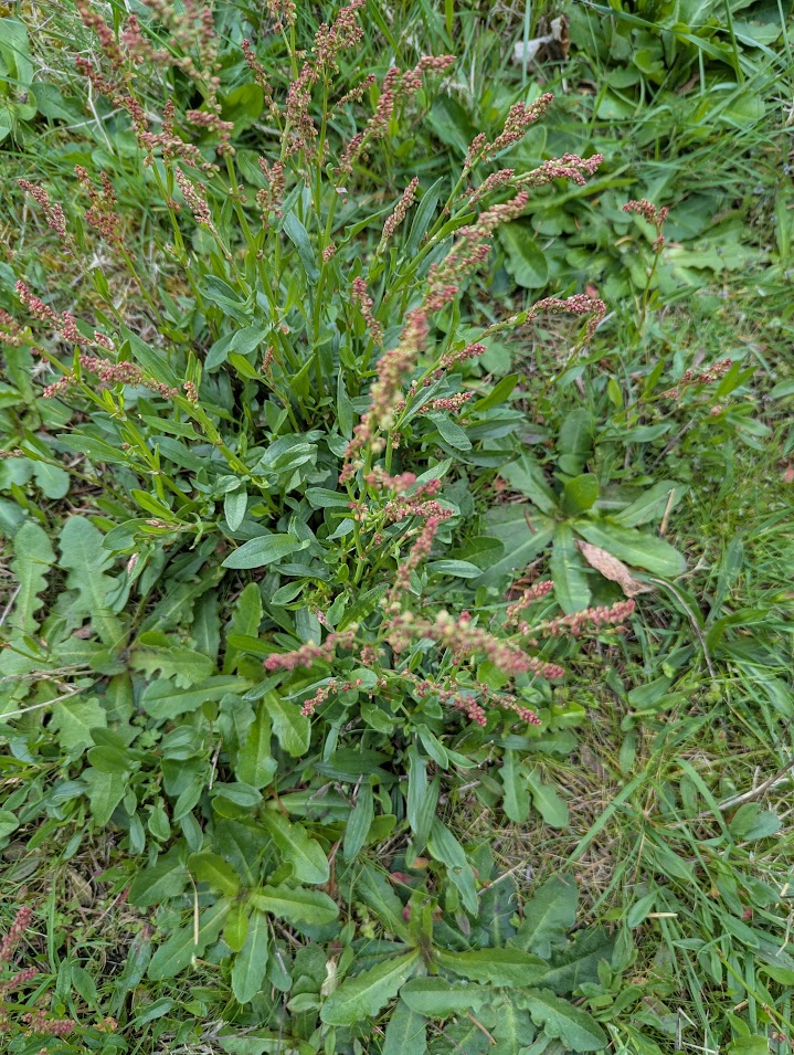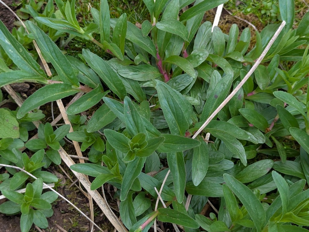 6.Sheep sorrel. Rumex acetosella. I grew up calling it “sorrel”, no “sheep” added. Also known as red sorrel, field sorrel, sourweed. Edible in small amounts, Considered invasive, certainly is common. Usually, it stays to the front yard but I pull it in all flower beds. I do love the tiny red flowers, but not enough to continue to let it take over flower beds. It can hang out in that front weed patch the makes our neighbors ashamed to know us (we call it our “pollinator habitat” and my husband mows it once the grasses get tall enough).