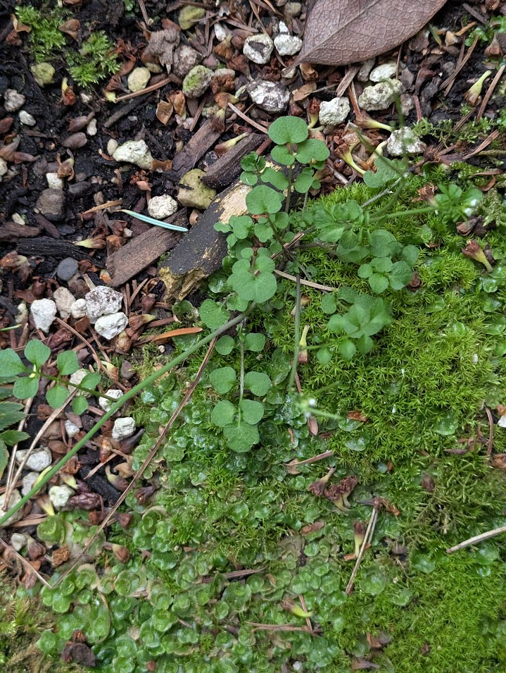 3. Hairy bittercress. Cardamine hirusta. This is an introduced pot herb and a favorite of butterflies. Pull it! Pull it before it seeds and those seeds shoot out like tiny missiles. I put this one in the same class as chickweed (not pictured). Early bloomer, bees love it, then it goes to see and you’ll find yourself being fired upon by missiles the size of sand that aim mostly for your eyes. I rarely get to it before it seeds because it grows, flowers, and matures before the rain stops in the spring. Ditto chickweed. Both weeds have medicinal uses, but I just try to pull them. Very shallow root system but those flying seeds are nasty.