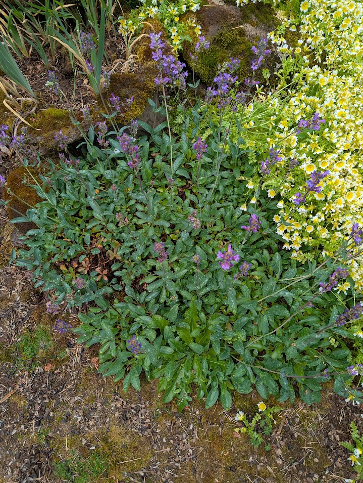 Penstemmon – we have at least three different natives planted in the prayer garden, which also happens to be a rocky slope, perfect for this drought tolerant, slow spreading perennial. We have collected from several areas in the State of Oregon, including the high desert country of eastern and central Oregon, and the alpine country of the Cascades. I’d have to key out which species this one is.