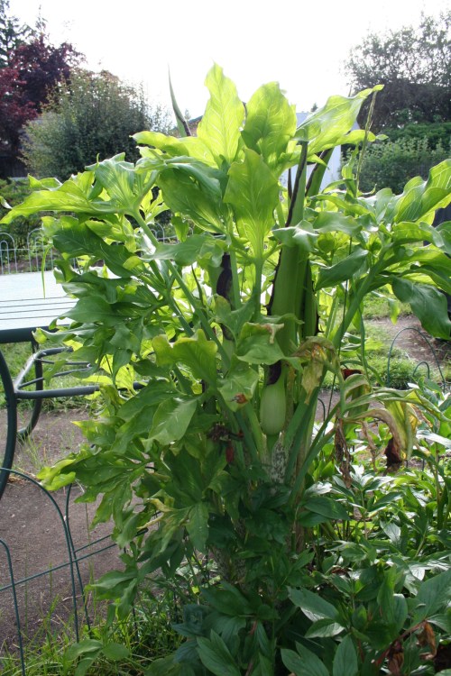 The Dragon Lily (dracunculus vulgaris) ends May and starts June with its stench – and striking beauty.