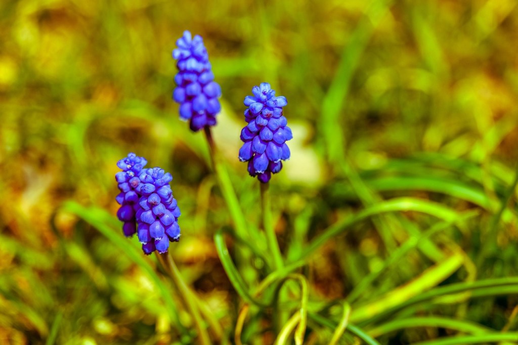 Now, when the first purple grape flowers begin to bloom, I do my first – and only – weeding of the space. I cut hyacinths for a bud vase. I toss the ones that pull up with the ever-present grass. I do my best to rid the space of grape hyacinth bulbs while enjoying the aroma and color. Of course, I fail and the hyacinth prevails.