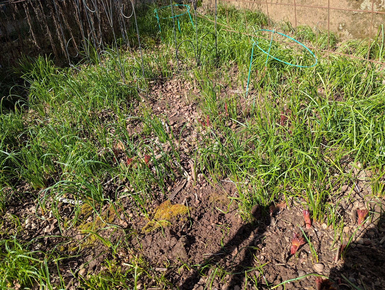 Unfortunately, milkweed does nothing to impede the growth of grape hyacinth, I don’t think anything short of a heavy-duty herbicide affects grape hyacinth (and I refuse to go that route). Every year I pull several hundred bulbs out of the ground and compost them. (Sometimes, I will give them away to a desperate gardener who doesn’t know better than to start them in their yard. I’m pretty sure I’m digging up bulbs to send to my brother in Reno this fall. “Hey, Bro, your yard needs some early spring color. I promise you won’t hate me in ten years…”)