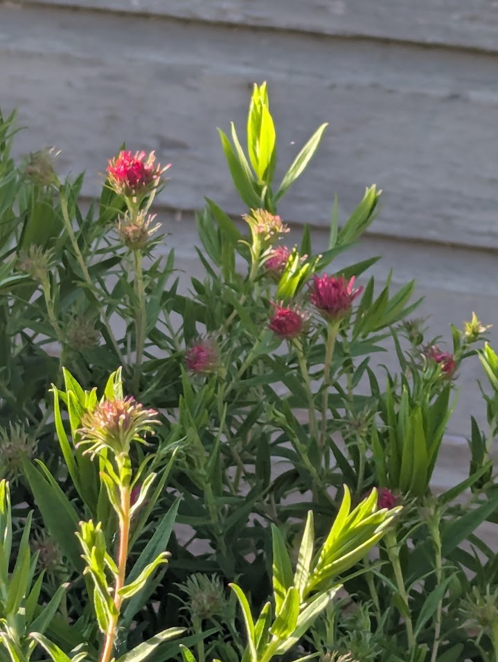 I planted milkweed thinking I could attract migrating Monarch butterflies. I didn’t know then that this part of the lower end of the Willamette Valley is not on the migratory path for these beautiful and endangered butterflies. No worries: the value blooming milkweed has for other pollinators outweigh my misplaced intentions. Every early bee, butterfly, and tiny wasp brave the sticky edges of the flowers to get at the pollen inside. Occasionally, a honeybee will get stuck and will have to struggle free. A few plants wilt and die, host to the milkweed beetle which does exist in this half of the valley.
