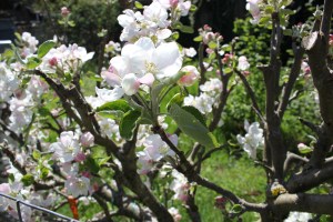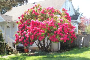 I placed the mock orange and the red flowering currant, native bushes, about five feet apart. The soil is rocky and I don’t water that flower bed very often which should be perfect for both bushes. I have four roses and a Rose of Sharon in the same border in front of our house. One of those roses will be history next spring as I have decided it was not what I expected and I really don’t like it that much. I’ll put it out on the street as free when I dig it out and replace it with a rose I do like. It’s a floribunda (Burgundy Iceberg – Jackson Perkins) and I prefer English tea roses. The point is: I will have a row of bushes blocking our house from the street from the mock orange through the small lilac. Lots of small flowers in between, like marigolds to repel the aphids.