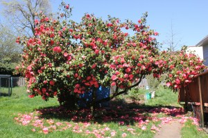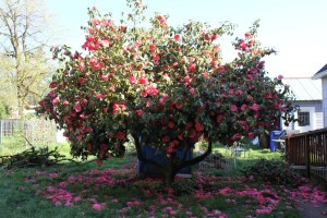 And maybe the fireweed, too: I discovered a new fireweed plant amongst the wildflower seeds that germinated. I didn’t dig it up, but left it under the Camellia.