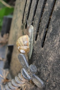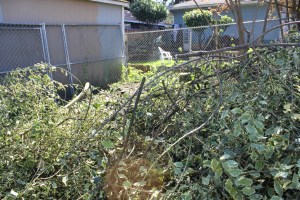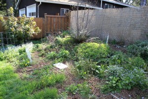 I left so many plants waving their seedy heads. We have lesser goldfinches, golden-crowned sparrows, and our usual juncos, chickadees, and song sparrows: they love the left overs of our garden, unruly as it seems. The grapevine ran down the length of the fence in both directions, providing us with a little more privacy from the little entomologist next door: she’s six and is always asking us to catch bugs for her. Her parents allow her to paw through their compost and we are often regaled by loud announcements of what she’s discovered in said pile: maggots, worms, native snails, slugs, non-native slugs, and more. We are hopelessly in love with the neighbor girl.