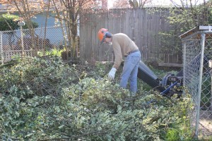 I pulled a number of huechera (coral bells) out and a handful of geraniums. These have been sitting in a bucket of water waiting for a nice day to replant. I can move more of them in the Spring, but for now I wanted to see if I could get them to take root during the rainy season under our vine maple out back and along the shady south flower bed. I lost my blackcap raspberry this past summer. I’m sad about that: I love my raspberries and it is a native that the bees, spiders, and birds love (and me – did I mention I love my raspberries?). Not to worry: there are seedlings coming up where the old vine was and they will be fruit bearing by the time I run out of frozen blackcaps.