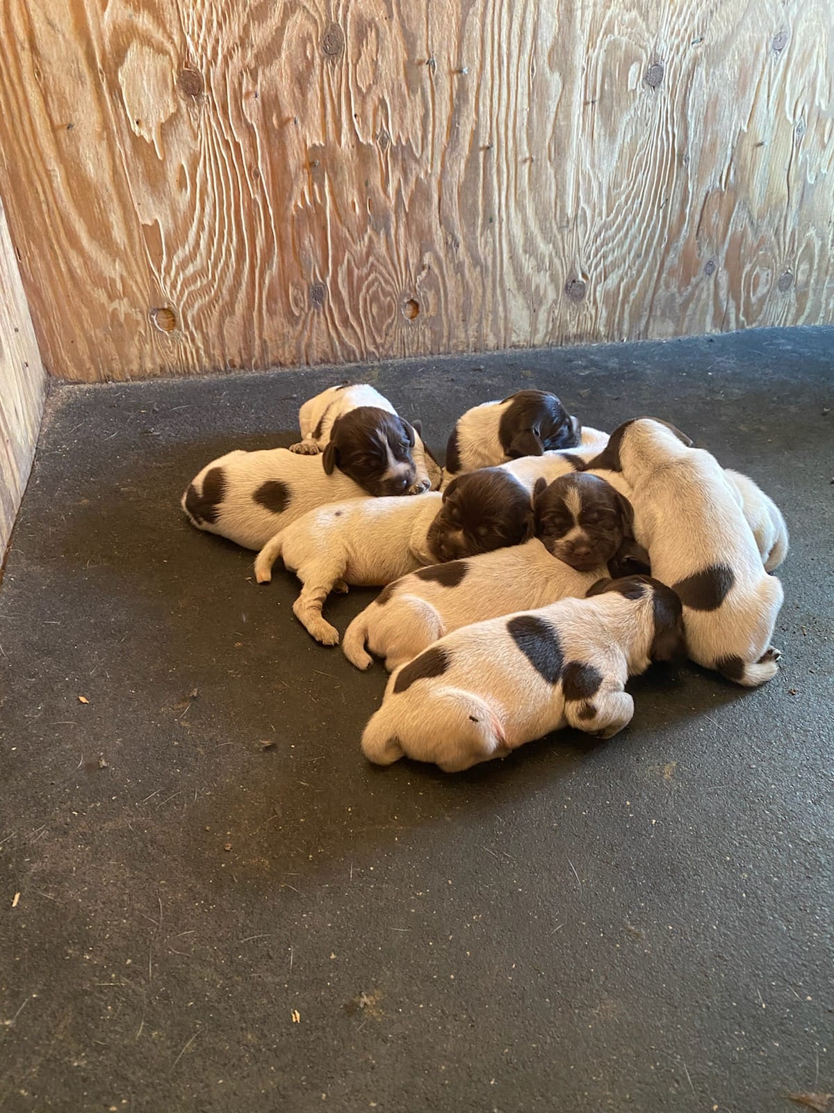 Last Tuesday, the 10th, the breeder called to see where we were. Somehow, he had us coming for Puppy a week early. There were probably several reasons for the mixup: he had local buyers who were itching to pick out a pup, he was going on a Black Powder hunt the weekend of the 14-15, outdoor temperatures were dropping below freezing, and the nine puppies were getting far too active for a working man to keep up with. They were getting to be a pain in the ass.