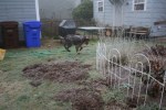He discovered snow, pools of water, and the freedom of the wide open spaces. His first emergency room trip was due to anaphylactic shock after running into a nest of yellowjackets while hiking: he forever held a grudge against all bees, wasps, and hornets. He loved beer, and would sing for it. He considered it an honor to sleep on top of someone, preferably a human (Harvey was something of a grouch about that). He ate tissues and paper towels, sticks in the yard, and probably something poisonous at least once. He was ever on guard against cats, rats, moles, gophers, crows, tweety-birds, people walking on the street past the house, and anyone not watching their plate of food at a camp-out. He loved to roll in smelly things, but he learned to draw the line at skunks – but only after the third bath in hydrogen peroxide, baking soda, and tomato sauce.