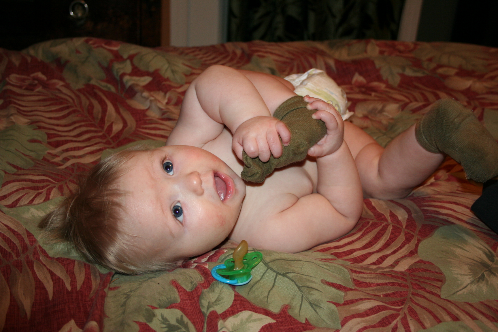 Our Thanksgiving Day was pretty quiet. The babies were up too early and the men slept in. Arwen fed children and prepared yams. I got up and poured myself a cup of coffee. Walking across the kitchen, WHAM! – my back went out. Just like that. Major spasms in the upper left quadrant that abated slightly when Arwen massaged it, but which have not yet left.