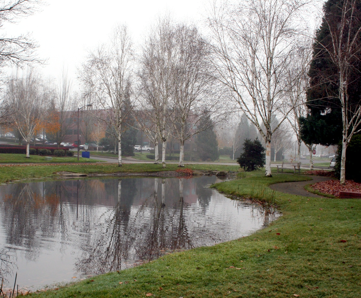 The weather was beautiful today! The sun came out and the rain went away. I got in two beautiful walks in the business park where I work (which is a lovely business park with low red-brick buildings; tall hedges; plantings of oaks, maples, cedars and Doug fir; and numerous ponds with walkways and lots of mallards and Canada geese).