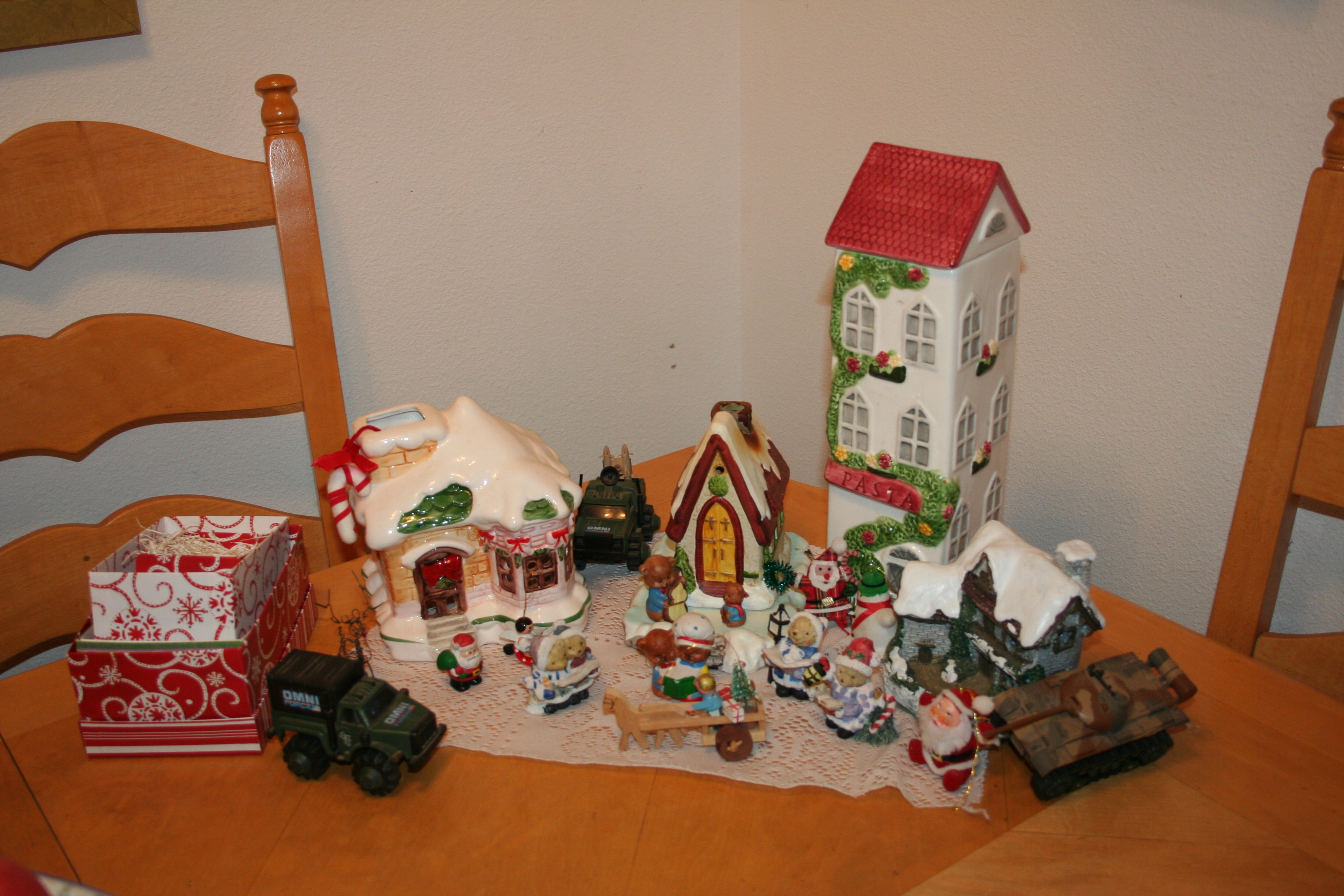 She never did believe us that it was an accident and terry had the string wrapped around his finger as he tried to figure out how to stand the tree upright…