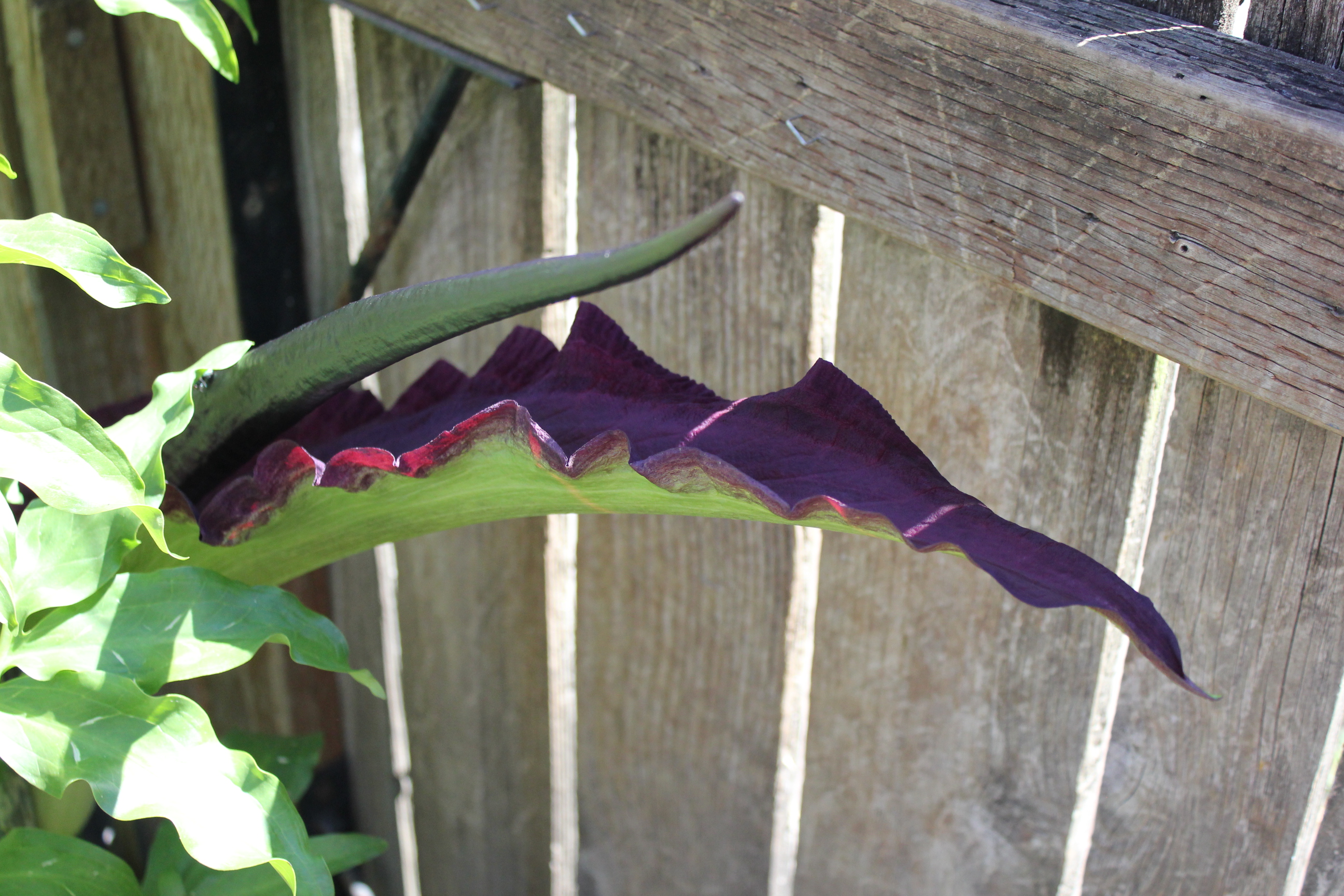 She took the photo of the log (above), a couple selfies that I can’t post because she is not my child (but I will send them to her), some random mystery photos (not sure what she was looking at – a hummingbird??), and one of the Voodoo Lily.