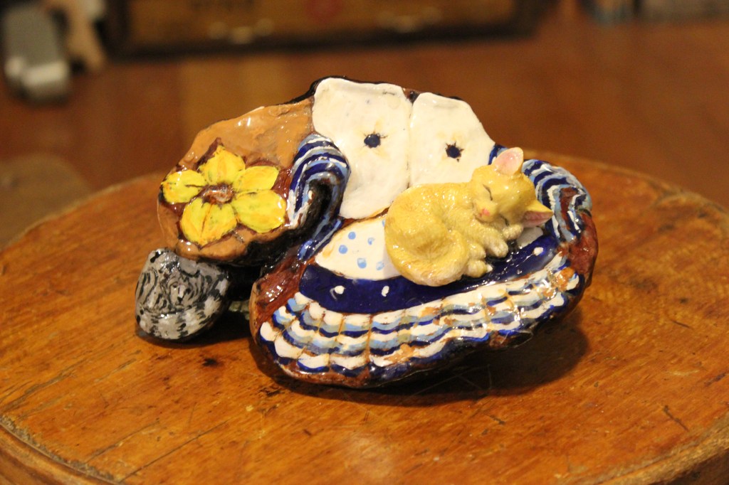 I created my first sculpture in 5th grade. I remember it vividly: it was made out of home-made papier mâchè. Each student in class made a bird, and the popular kids were very detailed and politically correct. My bird was a fantastical parrot-like creation, green, and funny-shaped. I was embarrassed at the outcome. Later in life, I realized that’s just how my brain translates to sculpture. All my papier mâchè creations since have been grotesque and strange. I’m fine with that.