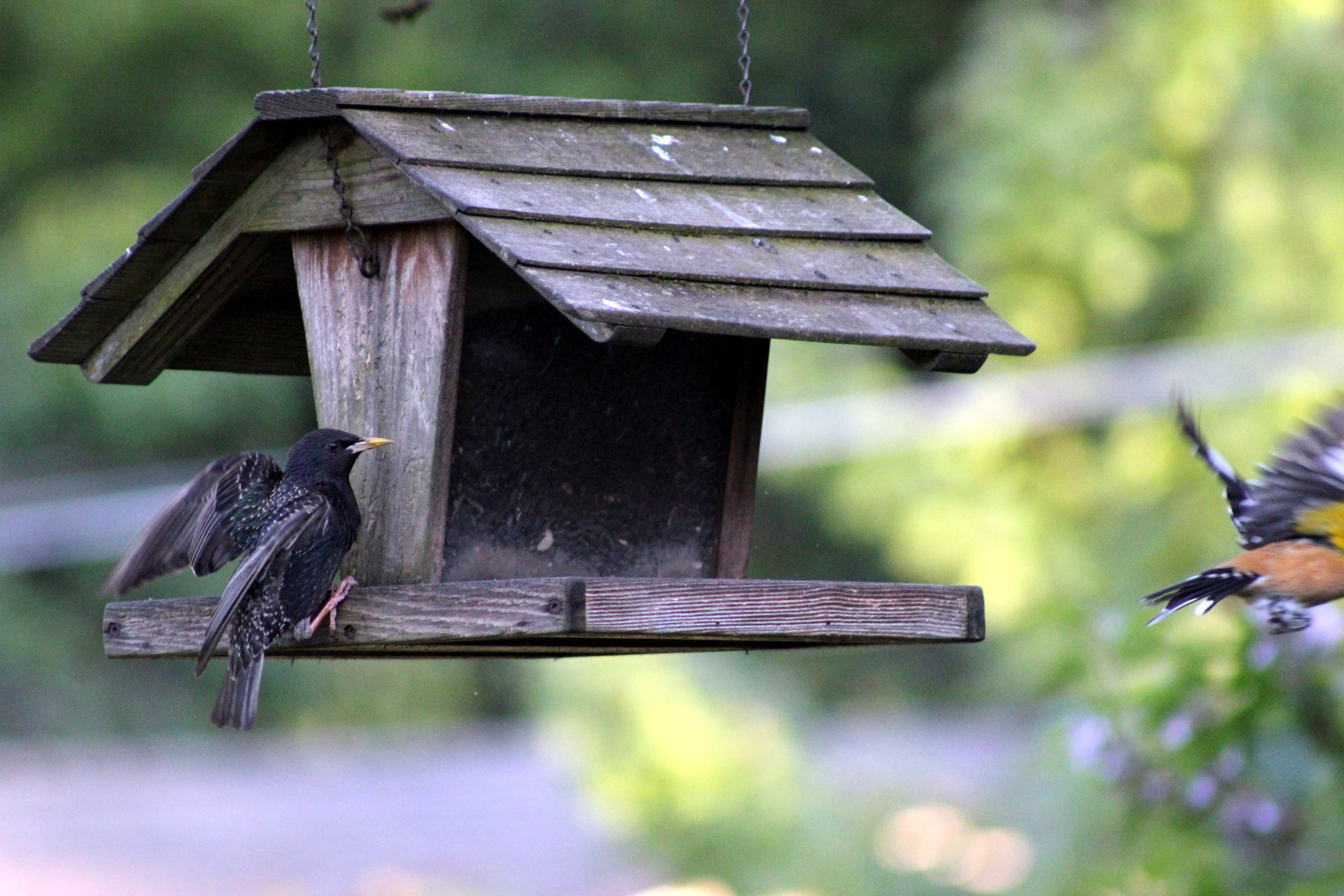 Somewhere in that timeline, we wandered through a town-wide antique fair and I came across a very unique hanger. The seller was offended that I wanted to use it for birds (“It’s a hanger for Aladdin lamps!” he protested). Yes, but it has no lamp, and you want more money than it is worth. We compromised on the price (I paid too much but it was the principle of the argument). $5 got me this hanger that I use for watering bees and wasps. Yes, I do need to clean the lower bowl, and the marbles contained therein, but its not like bees or wasps are thirsty right now. The guy selling it wanted $10 but he didn’t have a corresponding lamp to go with it and I know you probably can’t find one. At least not one you’d want to hang outside in the weather.