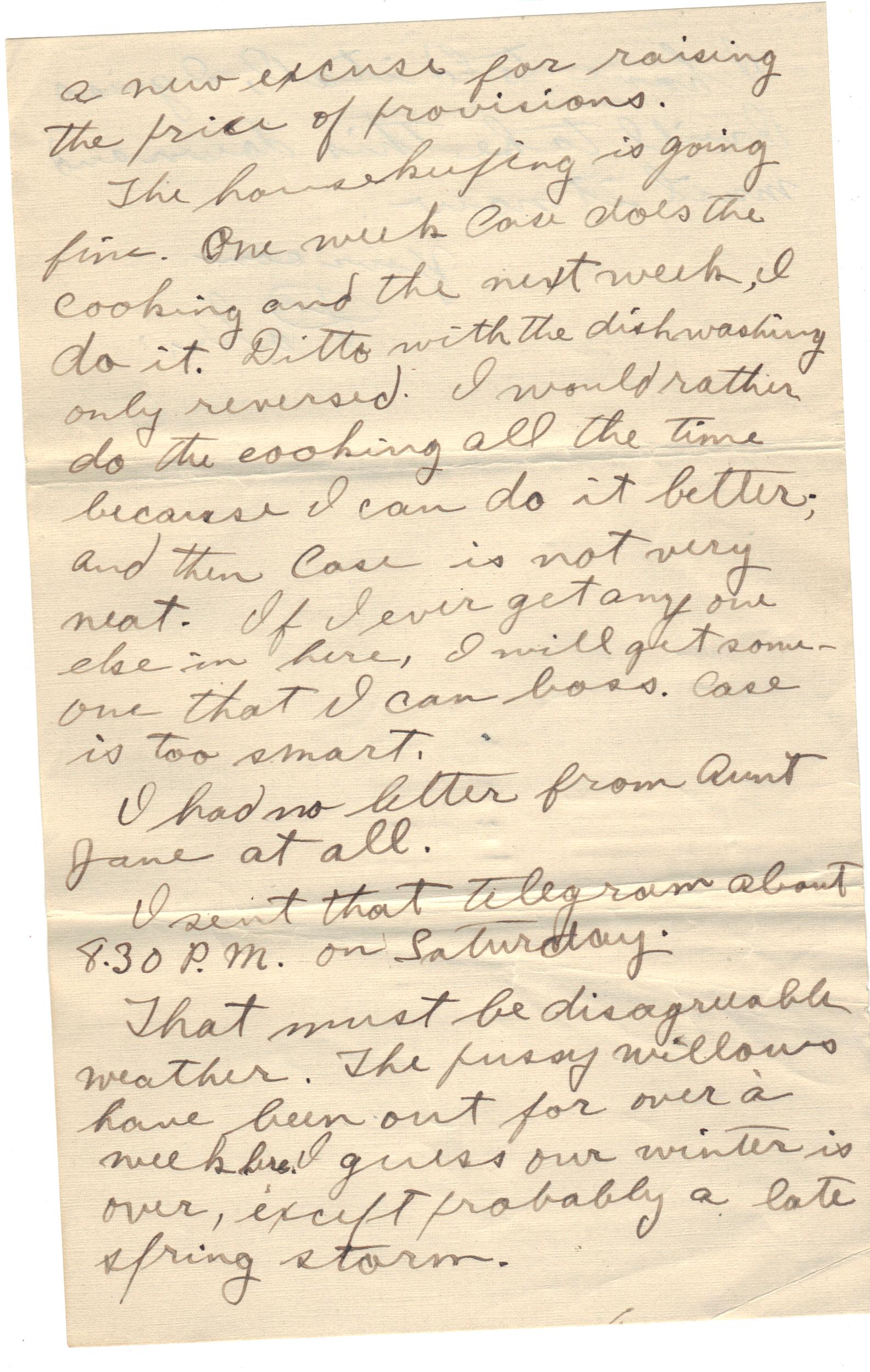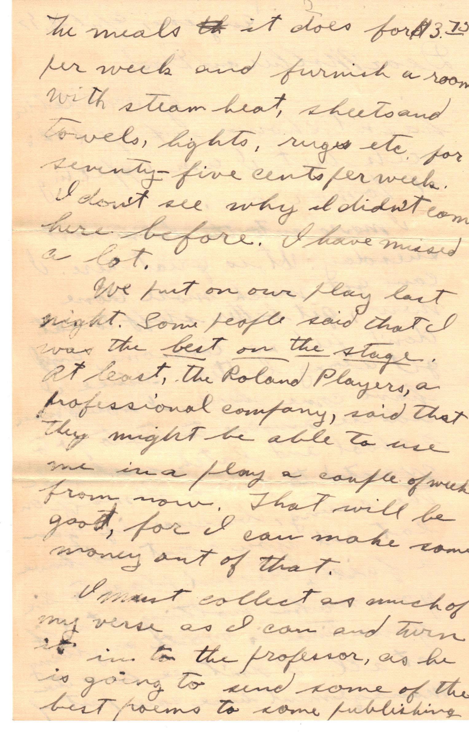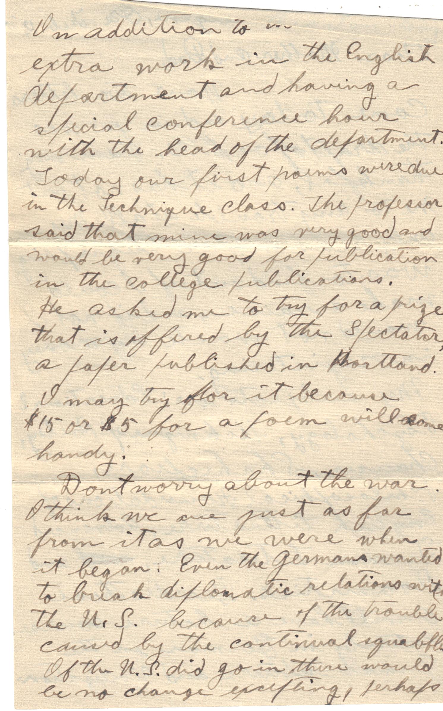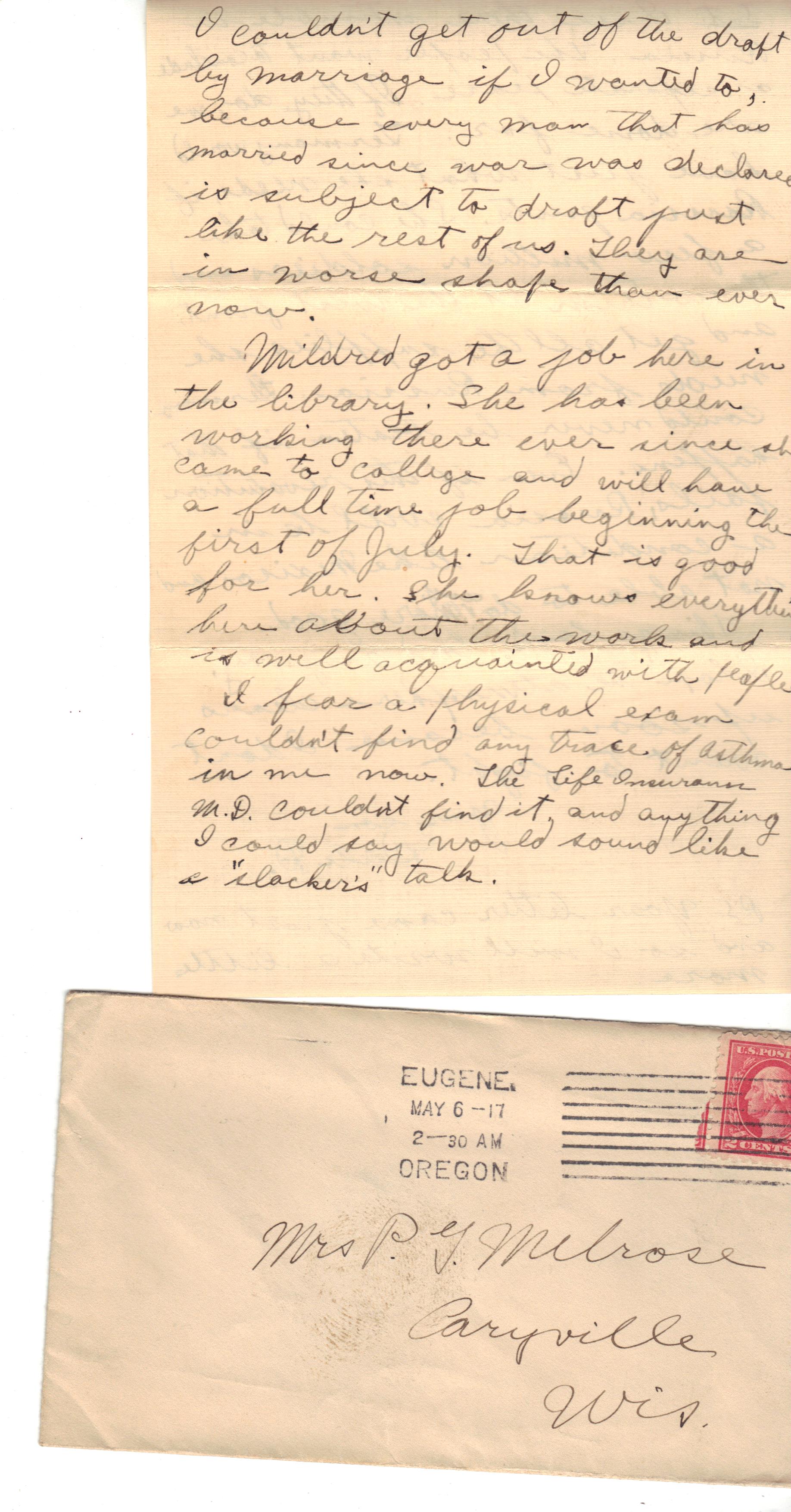 This step of mine makes me feel much more at ease. Before I did it I was all knocked out. The draft axe was swinging over my head and I couldn’t get down to business at all. All the boys were going, and you can imagine how I felt, and was made to feel. the only thing about it is the fear that you folks will worry.