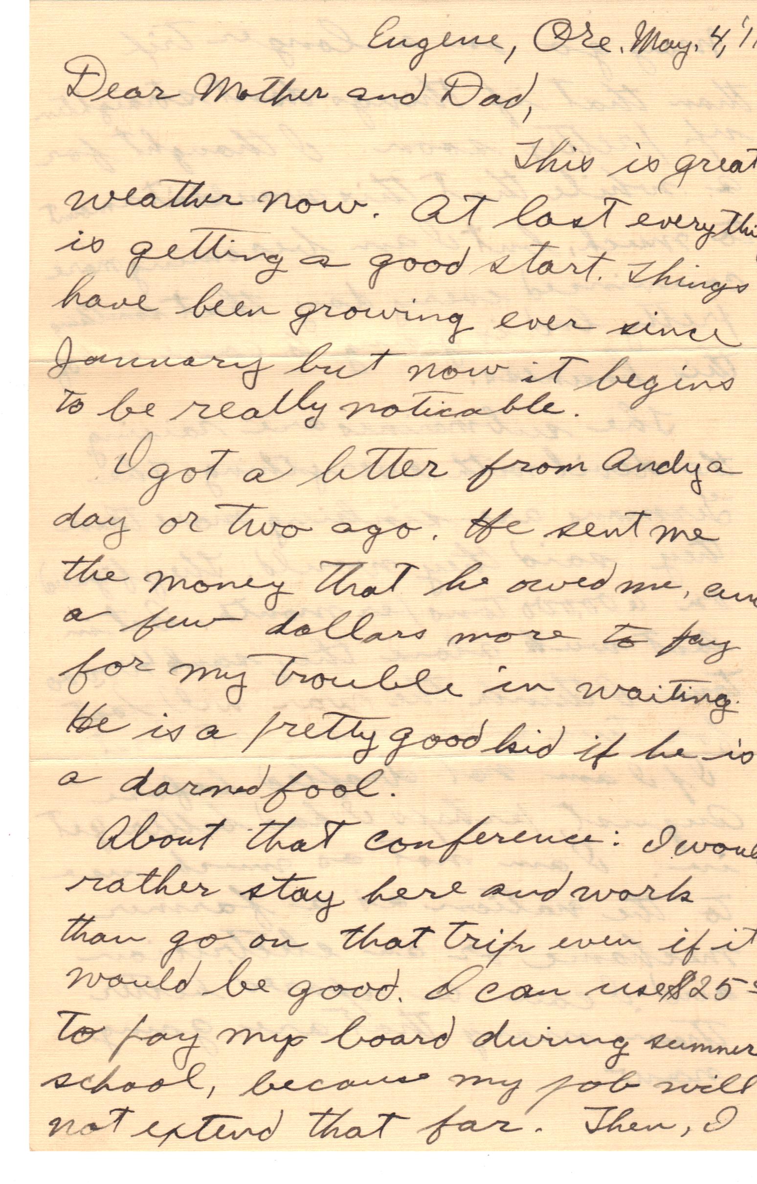 I would like very much to come home, but you folks know that all of us would seel worse if I did. A good-bye of any kind is hard on a person, and the way things are I can keep on writing just like I have been, and it will be much better all around. Don’t you think so?