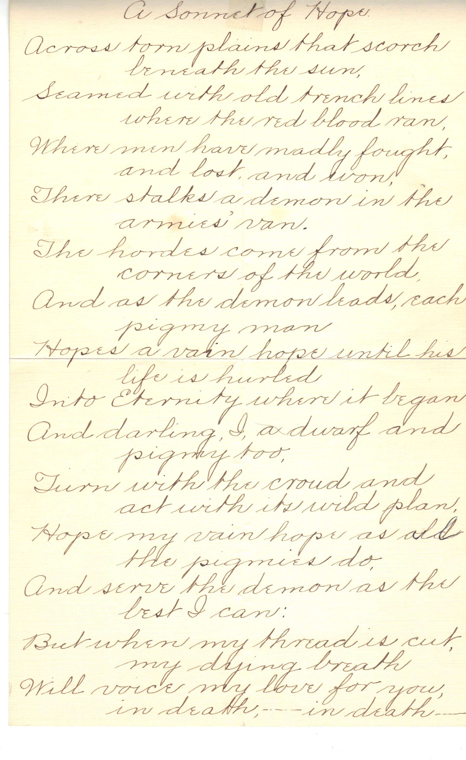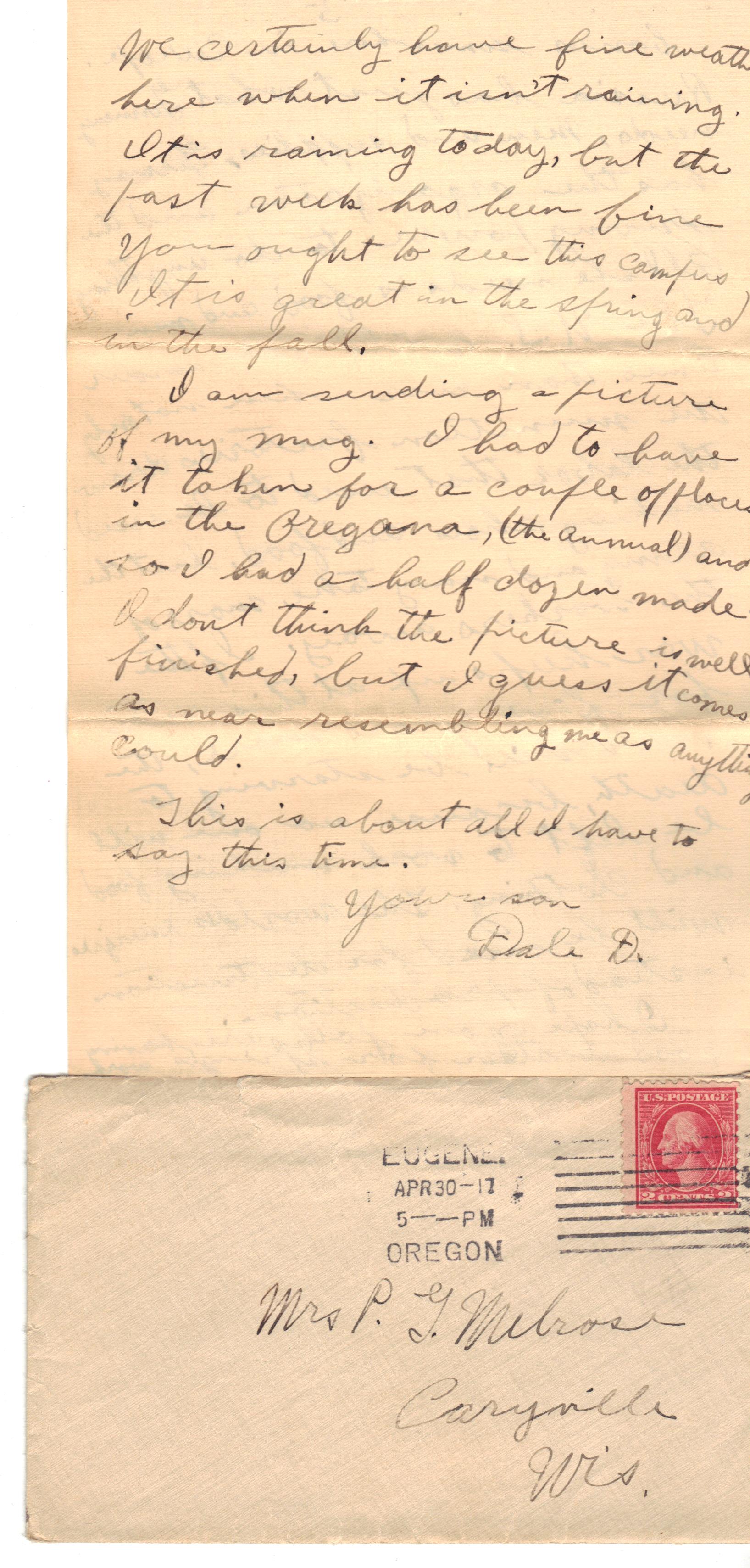 Above all things I don’t want you folks to worry about me. I will write every week as usual and the letters will get out someway. Of course after we get to France the mail service may be irregular, but it will work after a fashion I know. I think I told you before that the Corps goes to Allentown, Pa. to train. I think we stay there about a month.