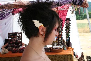 We left the Portland area by 10AM on Saturday for a hedonistic fun-filled day of people watching at the 2008 Faerieworlds Festival at Secret House Winery. I missed last year and was just blown away at how big this festival has become! It was three times larger than the first year: three times the vendors and three times the crowd! There were so many faeries, Elves, and Other Beings to see and everyone seemed to be in a high mood (except security, but I think they just choose to look dour). I took 125 photos (some are best described as WRONG, but I’ll figure out how to post those later) of some very wonderful fey people. I can’t post pictures of this fey person because I haven’t received any from my friend (she took some of me).