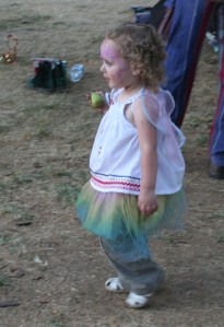 The little black-winged faerie was also a budding belly dancer. Here she is, patiently waiting for her mom.